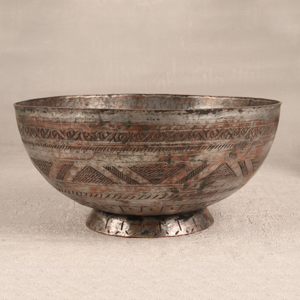 Buy a Bell Metal Singing Bowl online which is a harmonious blend of artistry and spirituality that is meticulously crafted by highly skilled artisans in the rich tradition of Islamic Art. This enchanting meditation bowl is a testament to their craftsmanship, featuring intricate engravings that evoke the beauty of the ancient world. Its antique finish adds a touch of timeless elegance, making it a captivating addition to any space. Handmade from high-quality bell metal, this singing bowl transcends the ordinary, producing resonant tones that create a serene atmosphere ideal for meditation and mindfulness practices. Its versatile charm allows it to grace the interiors of homes, offices, restaurants, hotels, or cafes, serving as both a stunning decorative piece and a functional tool for promoting tranquillity. Beyond its aesthetic allure, the Bell Metal Singing Bowl holds a myriad of uses. It can be employed in meditation sessions to facilitate relaxation, promote focus, and enhance spiritual experiences. Furthermore, the Bell Metal Singing Bowl makes for an exceptional and thoughtful gift. Whether it's a special occasion, a festival, or an auspicious moment, presenting this exquisite bowl to your loved ones signifies a gesture of serenity, beauty, and cultural appreciation.