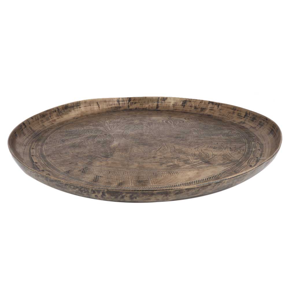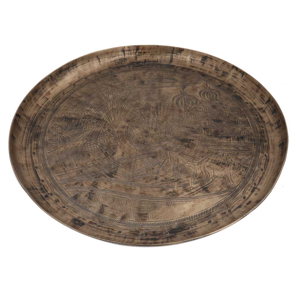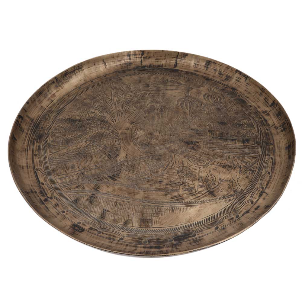 Bell Metal Tray Or Plate Hand Carved Village Landscape And Farming Scene. Serveware,Tableware, dinnerware,wall decoration for home, office, restaurant, clubs . Anniversary gift, new year gift. Gifting option for your near and dear ones.