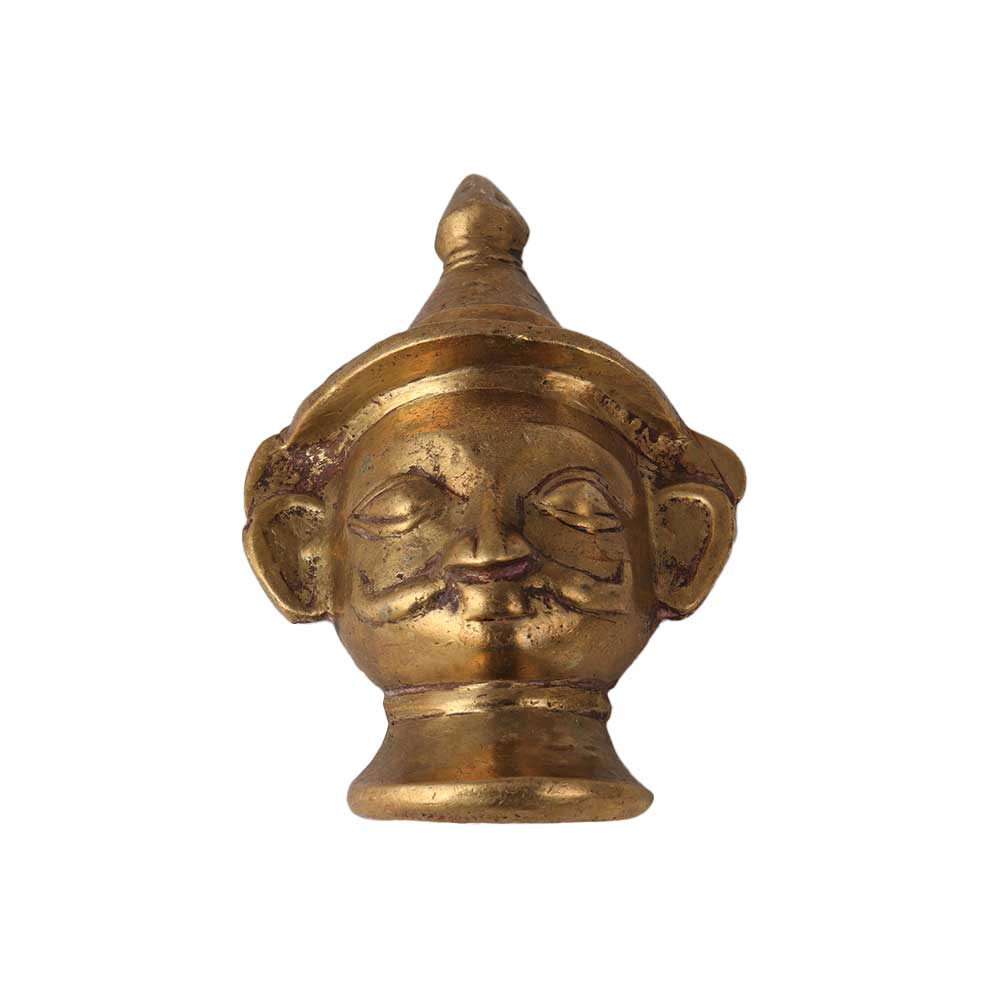 The India Bhairava Mask, also known as a Brass Shiv Murti, is a representation of the Hindu deity Bhairava. Bhairava is a fierce aspect of the god Shiva and is often depicted as a fierce, wild, and terrifying figure. The Bhairava mask is typically made of brass and is often used as a decorative item or as a focal point in Hindu temples. The mask is adorned with intricate detailing, including intricate carvings of the god's facial features, such as his eyes, nose, and mouth. The statue is also adorned with a crown, a trident, and other weapons. Bhairava is often associated with protection, power, and the destruction of evil. It is believed that worshiping the Bhairava mask can bring blessings, protection, and strength to the devotee. Buy god statue online that is used in many rituals and ceremonies.