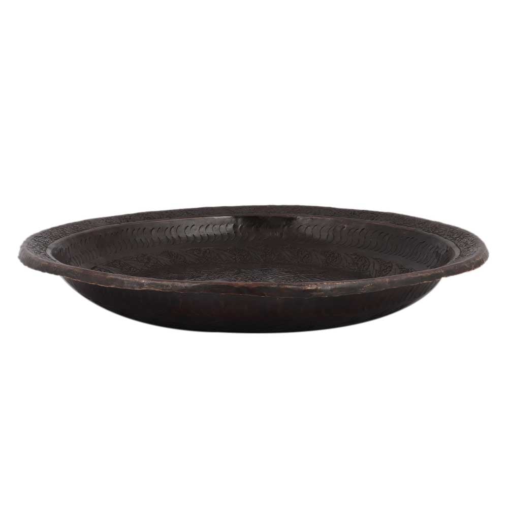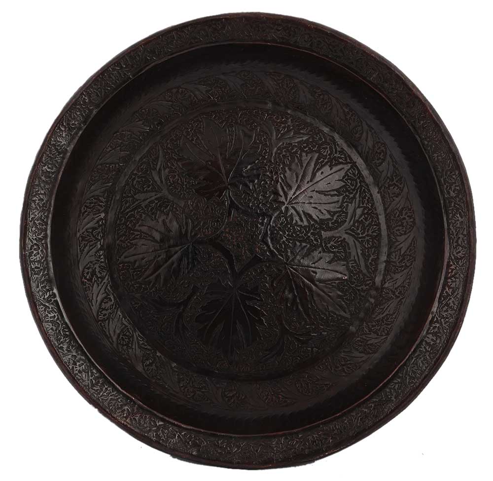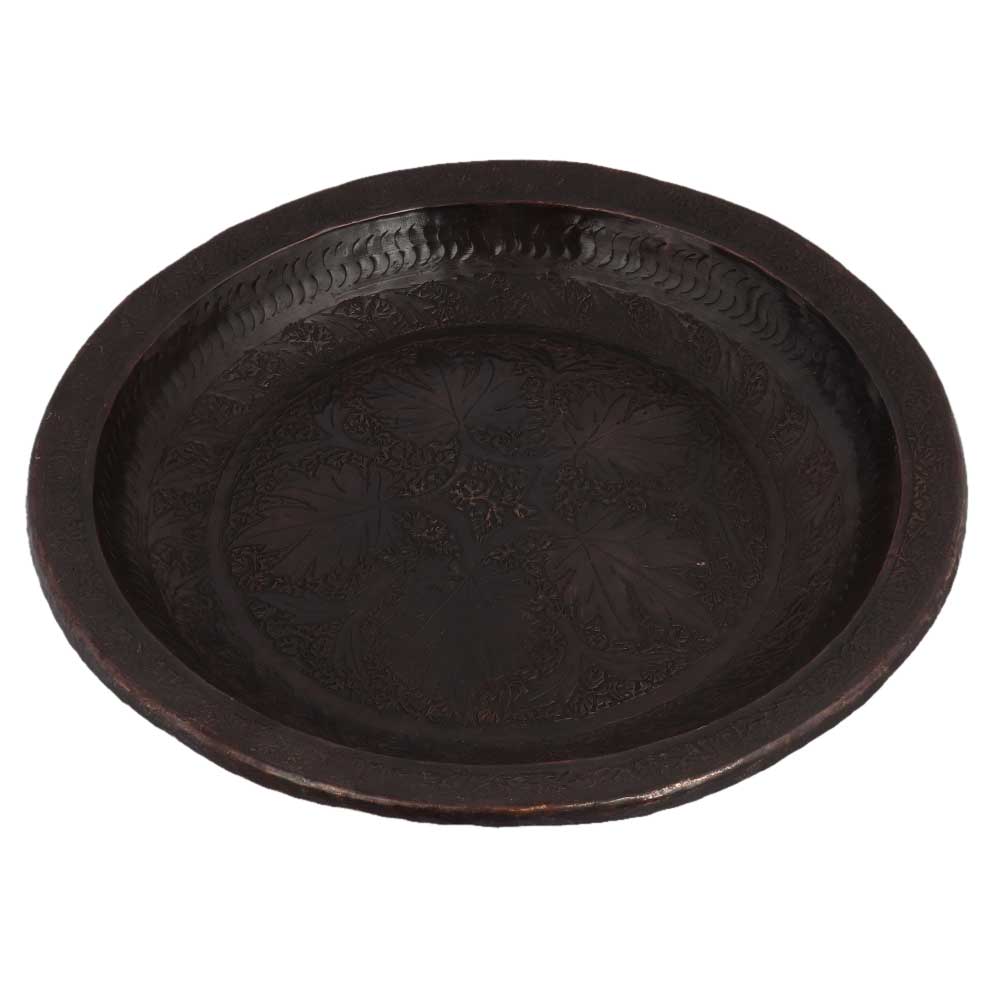 Big Leaves Engraved Copper Plate With Patina for home Decoration using the repousse© technique combined with engraving with elaborate work of flowers and leaves. Home decoration, dinnerware, serveware, hotel decoration, Diwali, anniversary and new year gift.