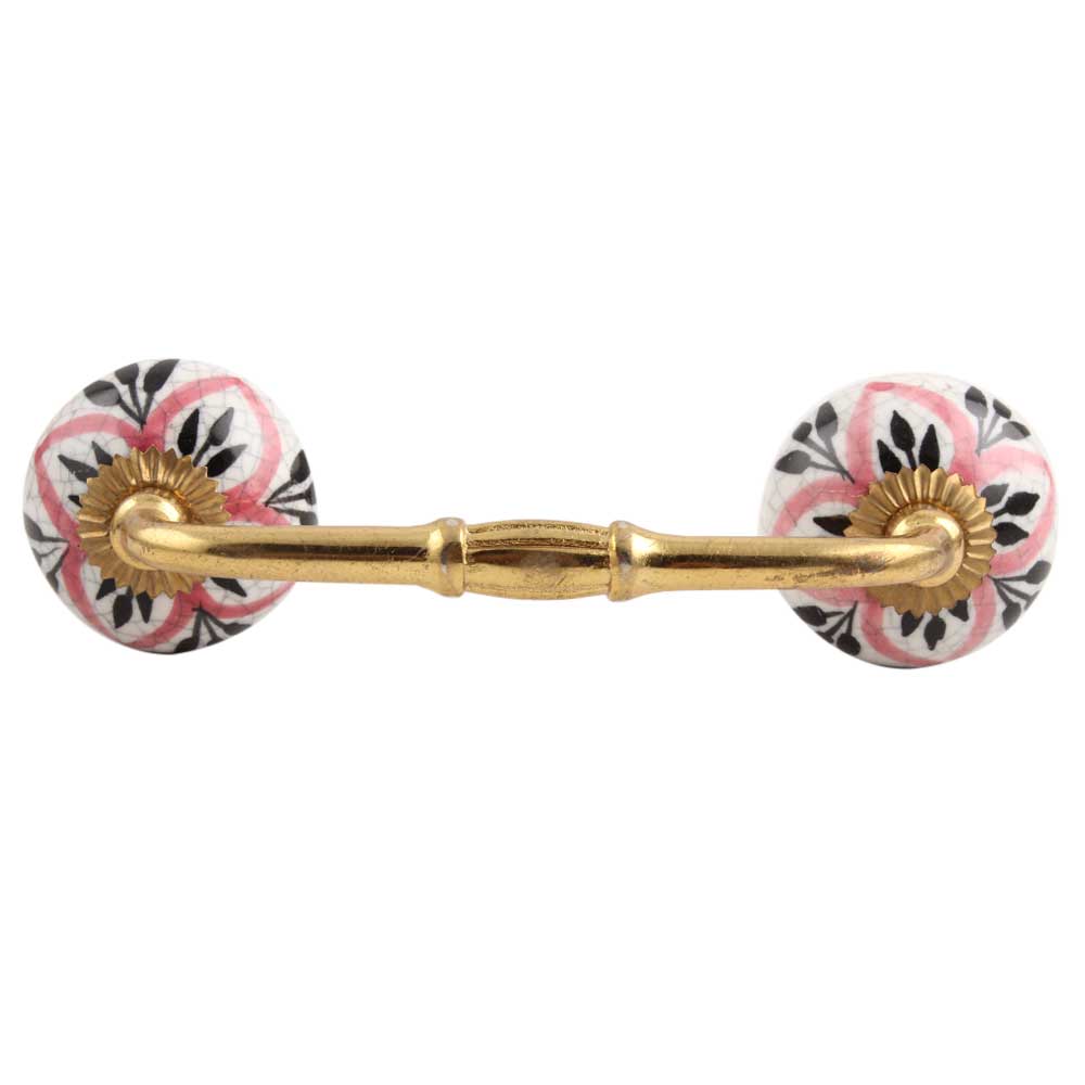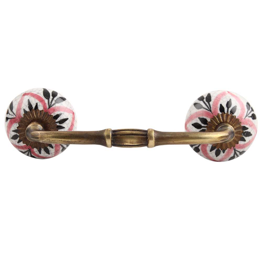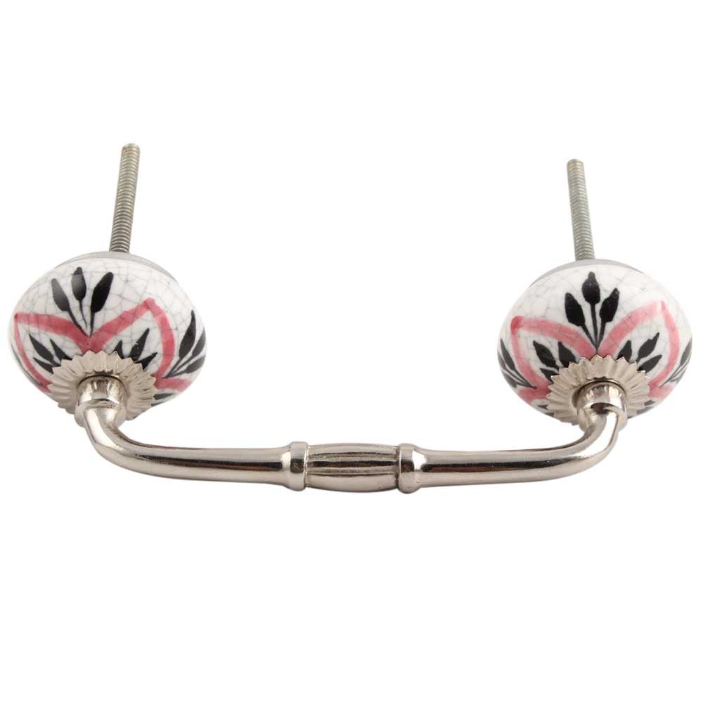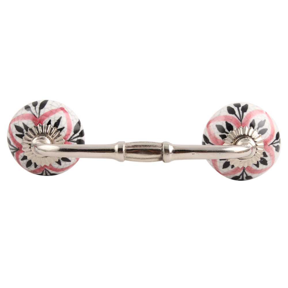 Black And Pink Floral Crackle Ceramic Bridge Handle. Ideal for Drawer, Dresser, Cabinet, Wardrobe, Cupboard and Almirah etc.