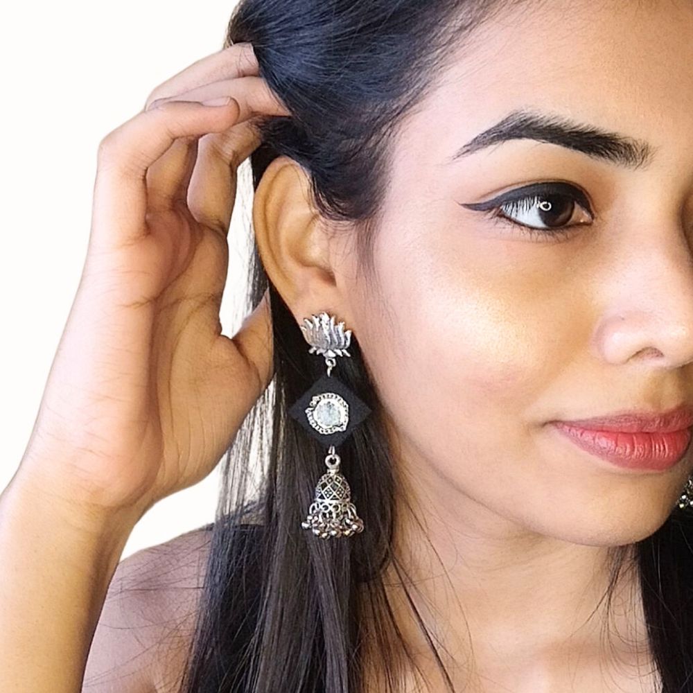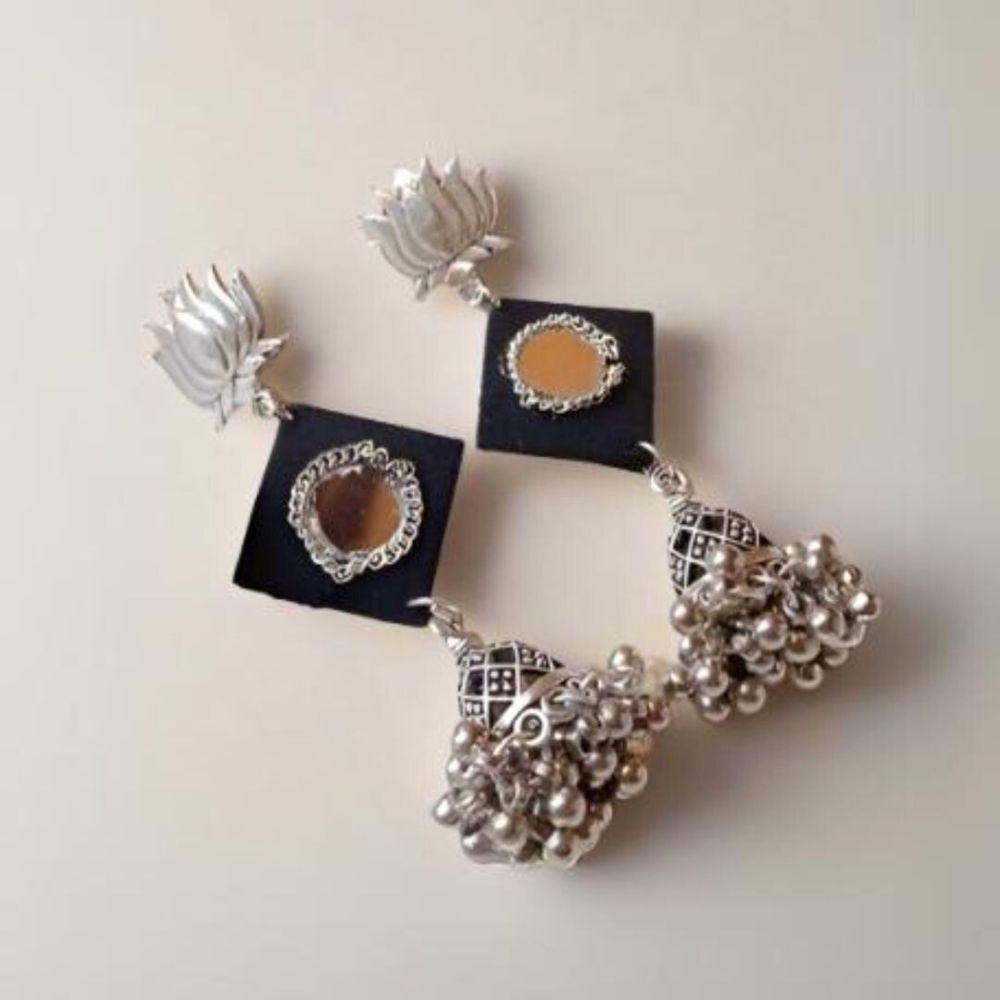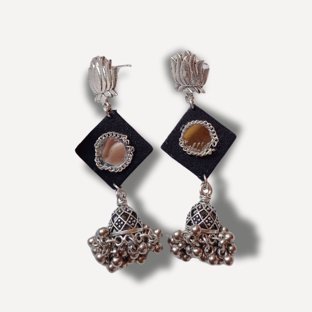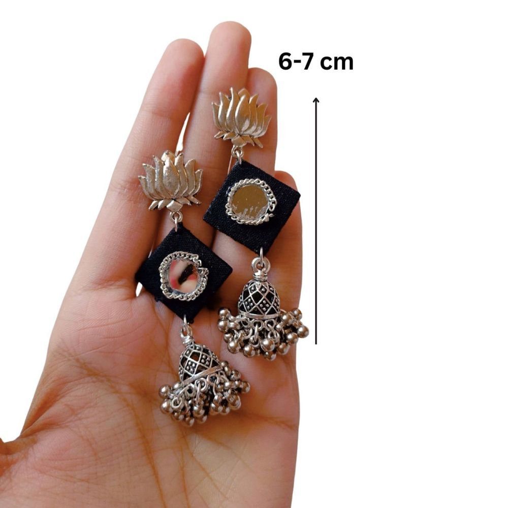 The Black and Silver Mirror Everyday Earrings are designed for effortless styling rooted in handcrafted simplicity. Crafted on a fabric base, the classic black tone offers timeless versatility, while silver-toned mirror accents add just the right hint of shine. Lightweight and balanced, these earrings are easy to wear from morning to evening. They are ideal for women who prefer understated jewellery with a refined ethnic touch.