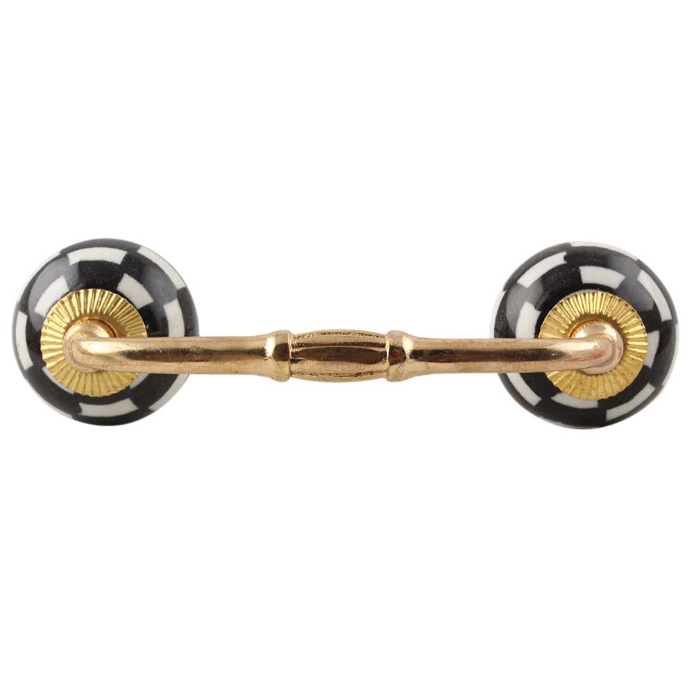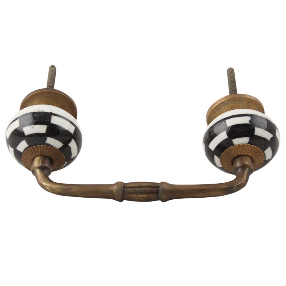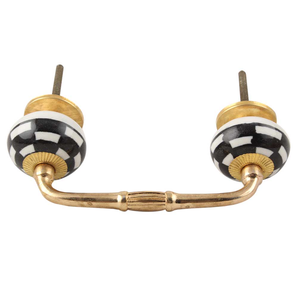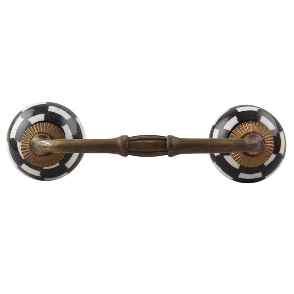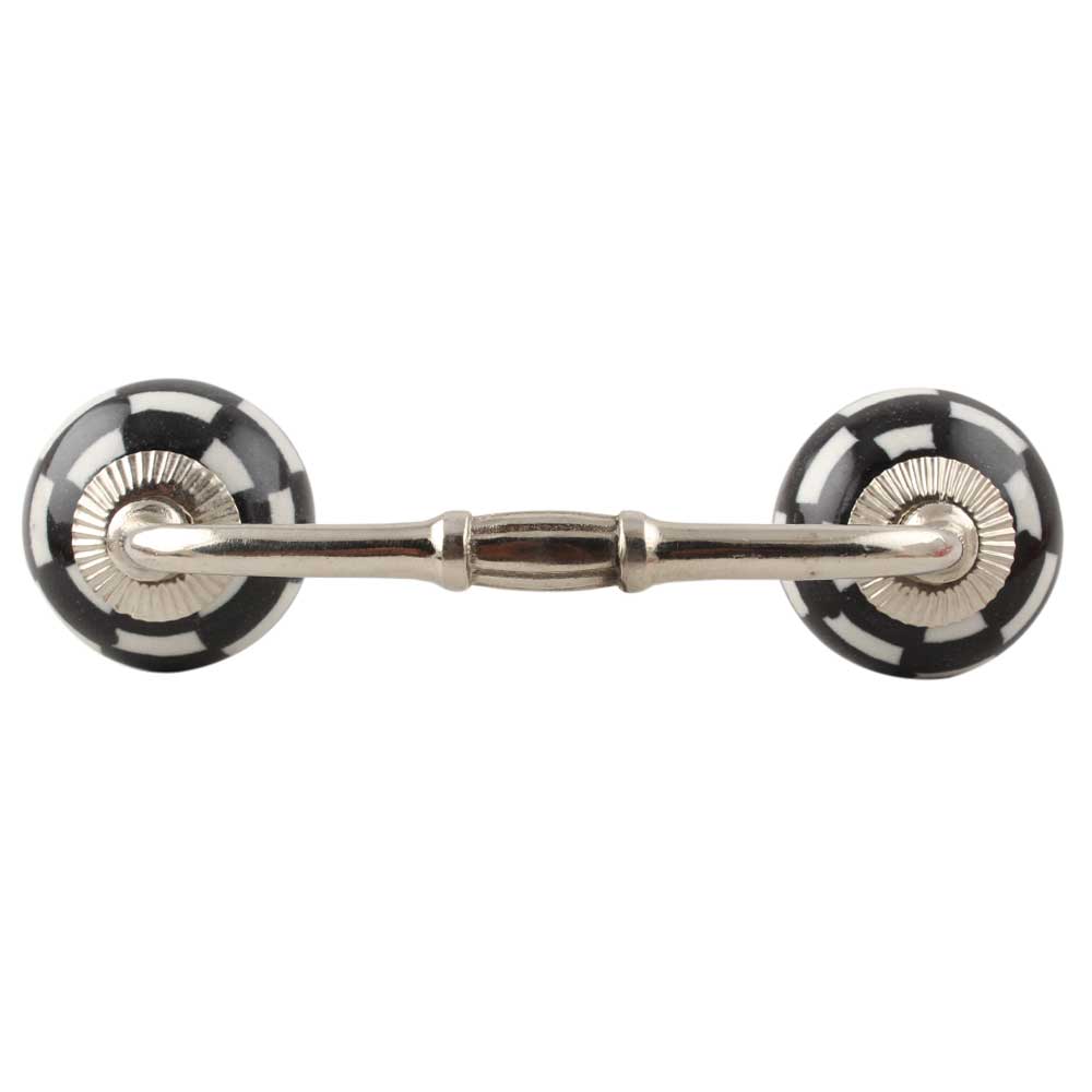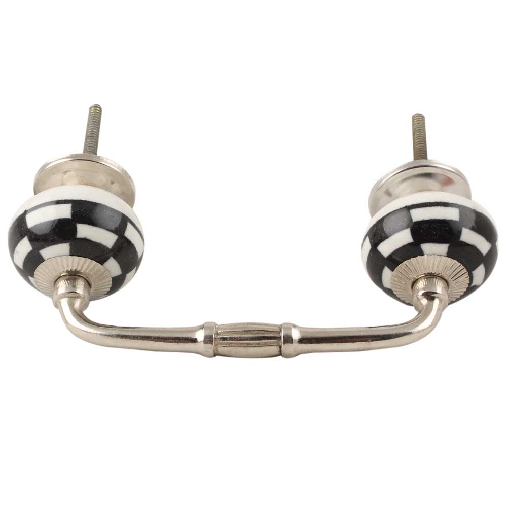 Black And White Ceramic Floral Bridge Handle. Ideal for Drawer, Dresser, Cabinet, Wardrobe, Cupboard and Almirah etc.