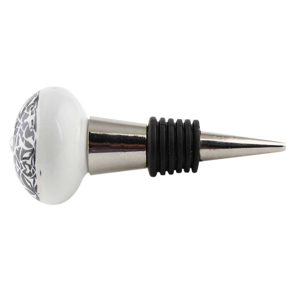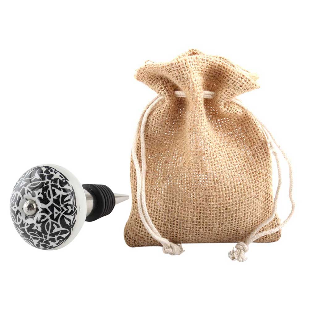 Black And White Floral Ceramic Wine Bottle Stopper. Zinc Alloy Wine Bottle Stopper with Attractive Jute Bag Packaging.