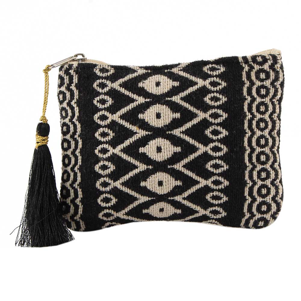 Black And White Geo Graphic Zip Top Clutch Bag With Tassle