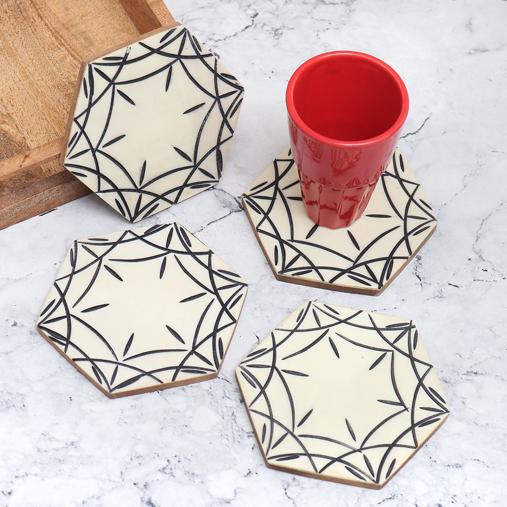 Made from premium wood, these coasters are built to endure everyday use. The natural wood grain paired with the sleek black and white design guarantees lasting durability and a stunning addition to your table setting.