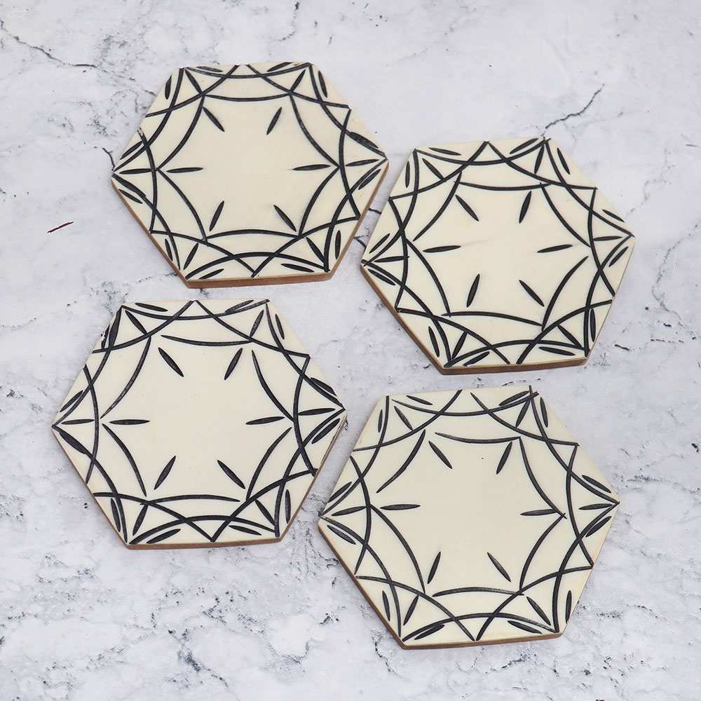 Enhance your living space with these stylish yet practical coasters. The black and white design provides a sophisticated touch that complements any table or countertop, making them suitable for both casual and formal occasions.