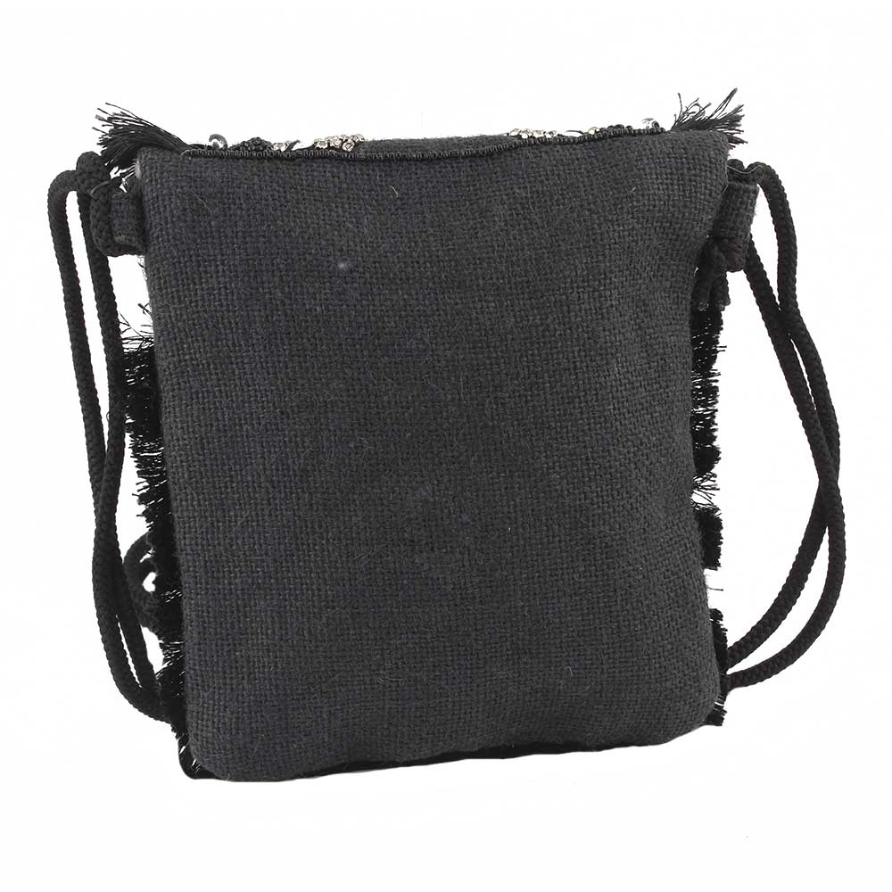 Black And White Heavy Hand Embroidery Foldover Cluch Bag With Coins