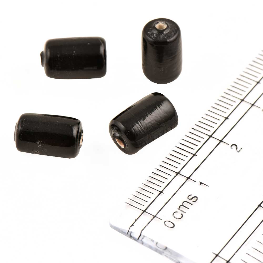Black Barrel Shape Loose Glass Jewlery Beads (Pack Of 12)