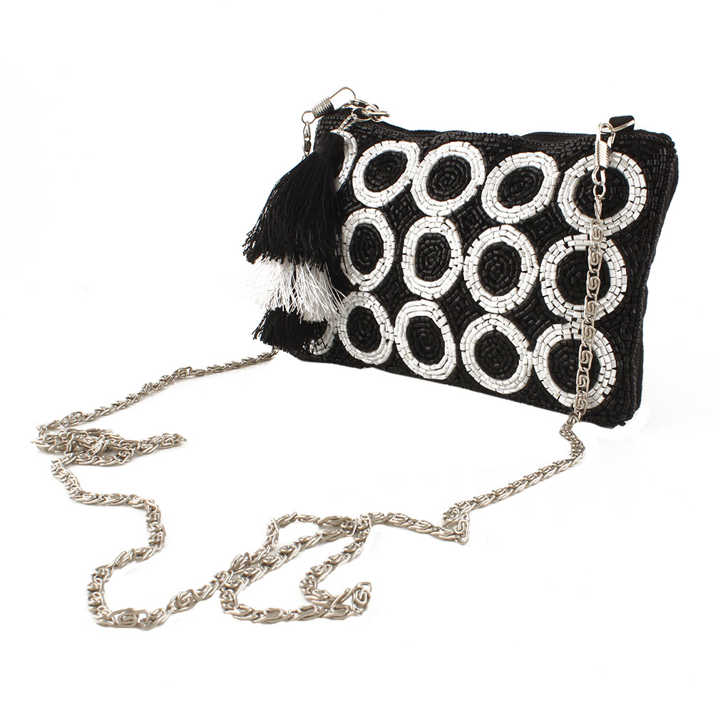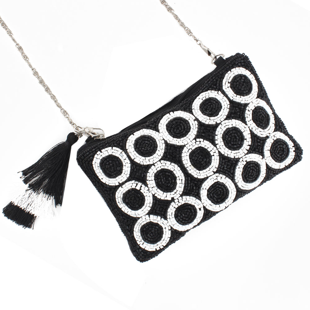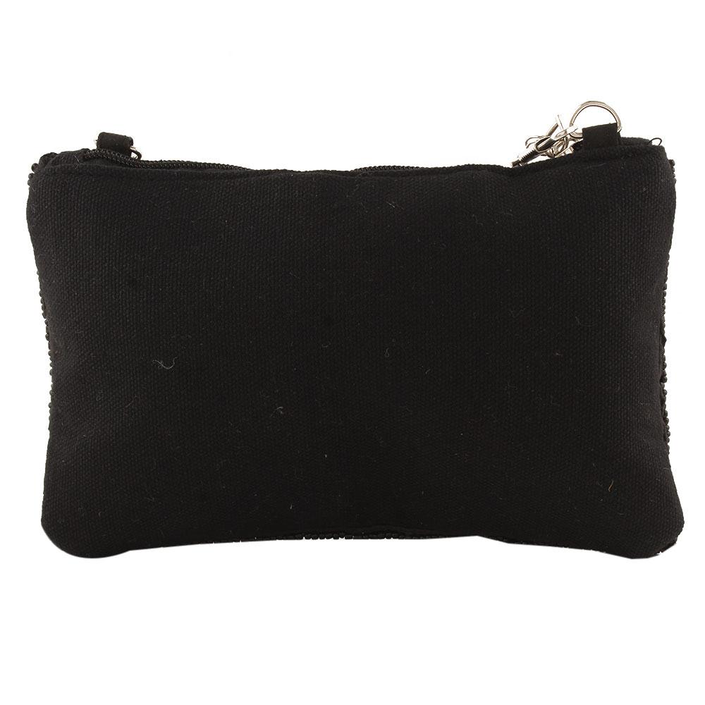 Black Beaded Zip Pouch Circle Design