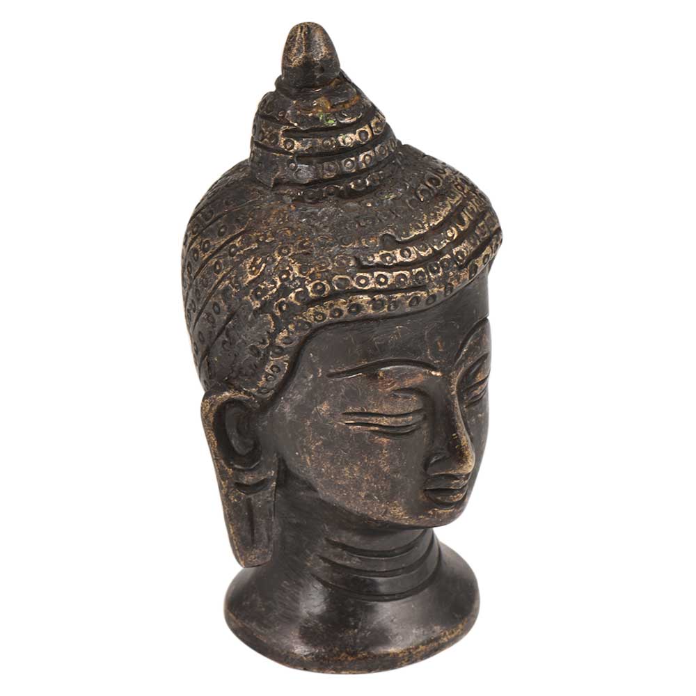 • Black Brass Buddha Head Meditation Statue