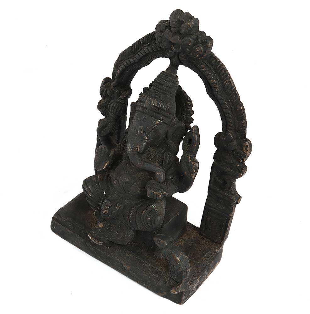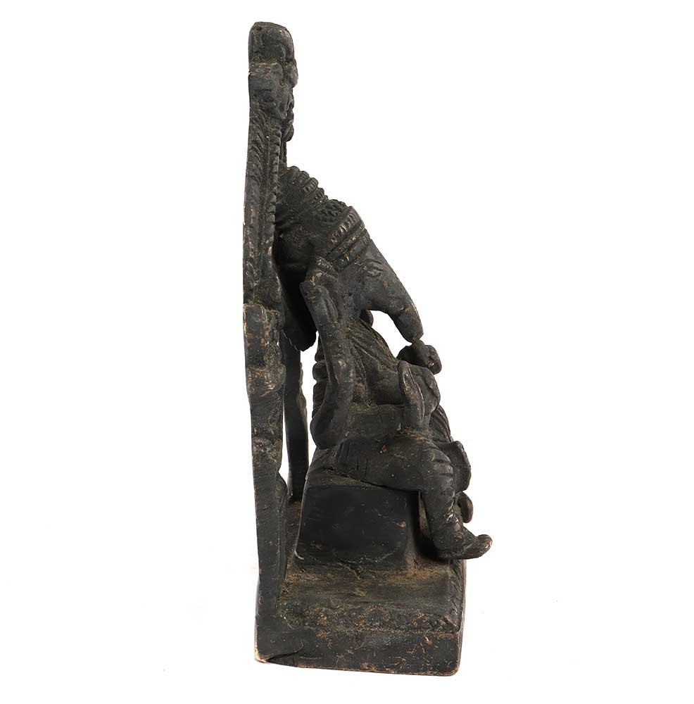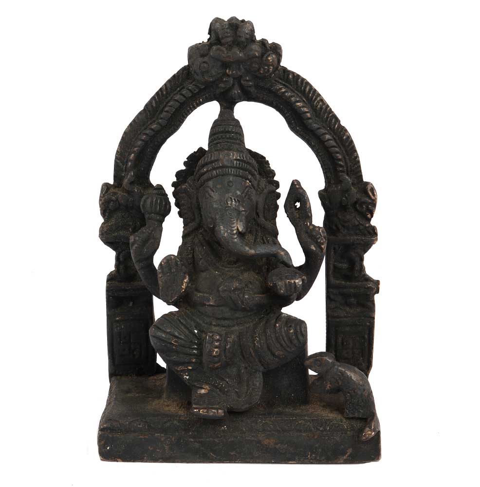 • Black Brass Sitting Ganesha Statue With Prabhavali