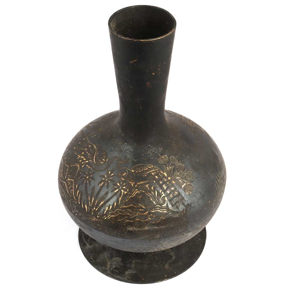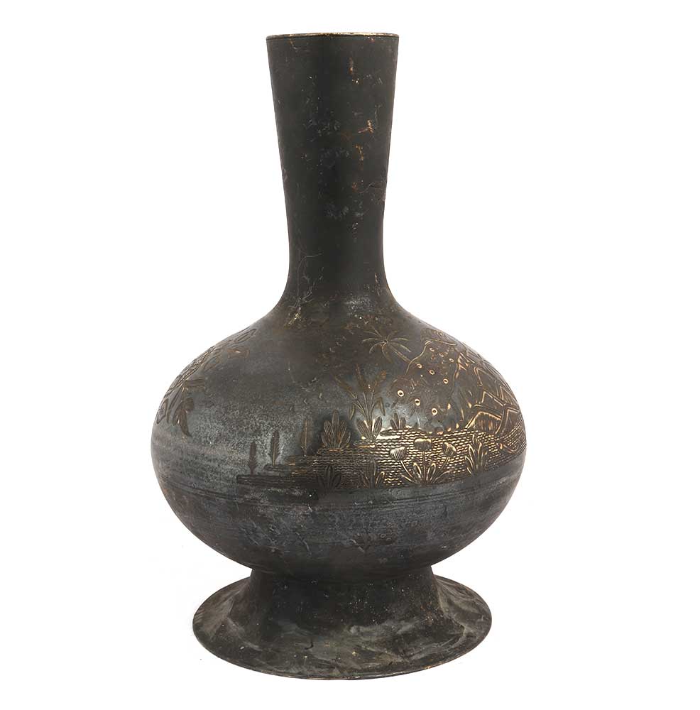 Black Brass Vase With Palm Tree And Mountains Design
