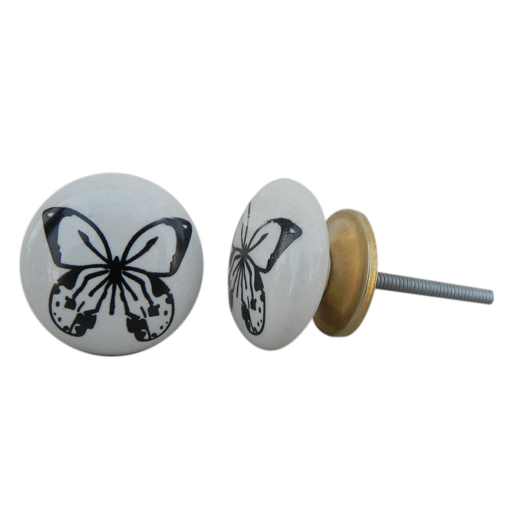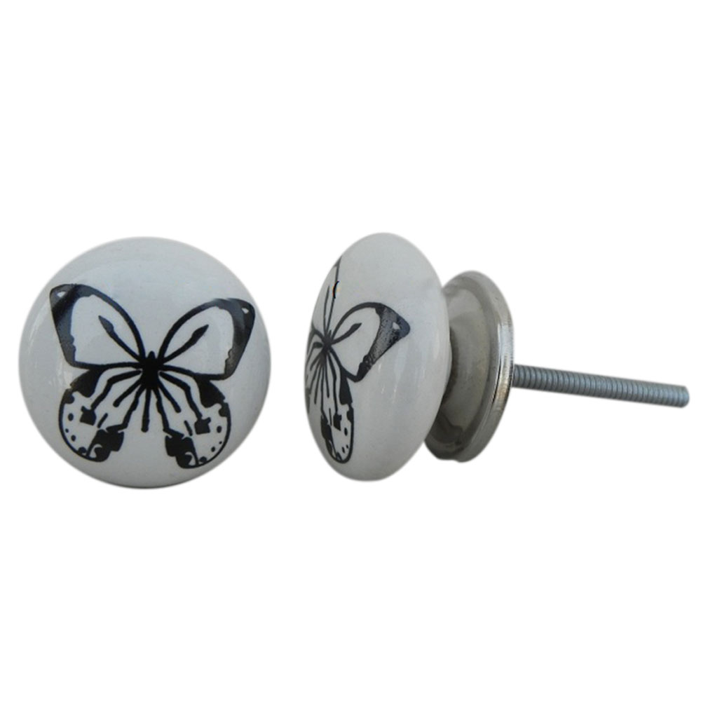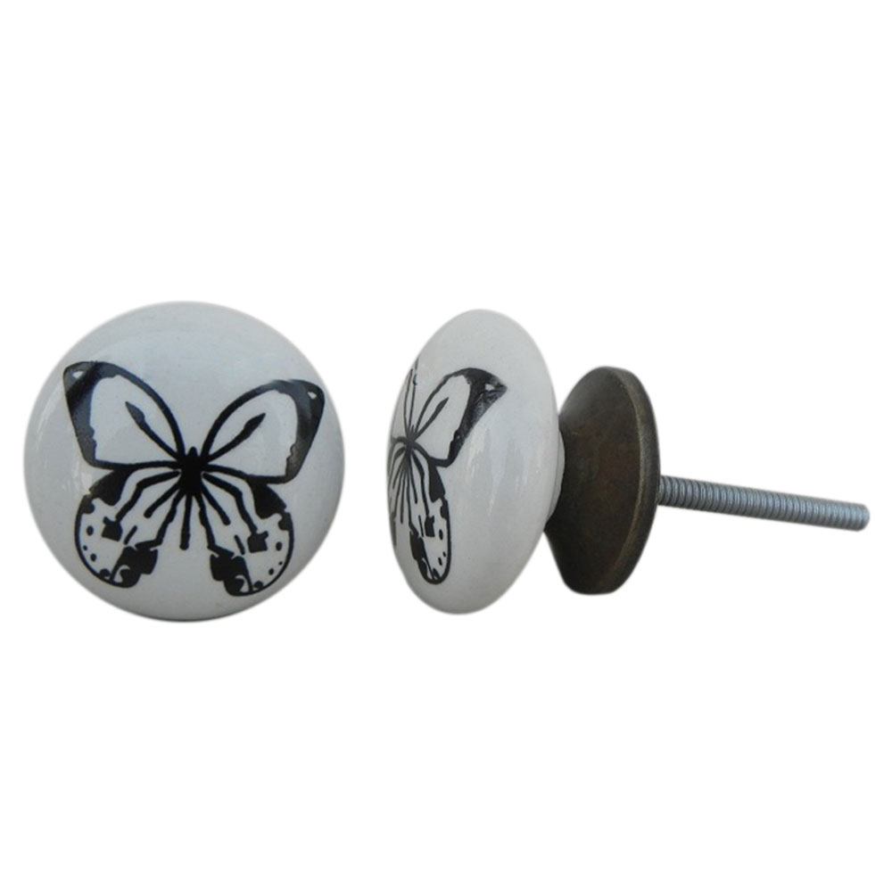 Black Butterfly Ceramic Cabinet Knob
