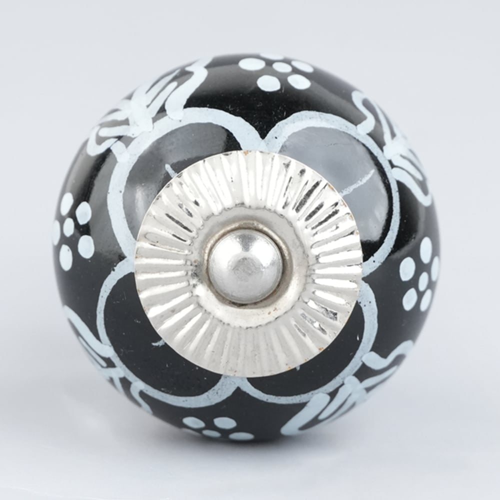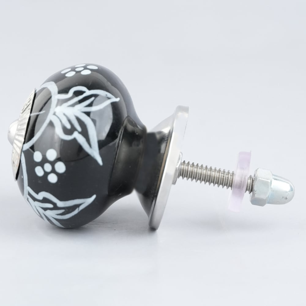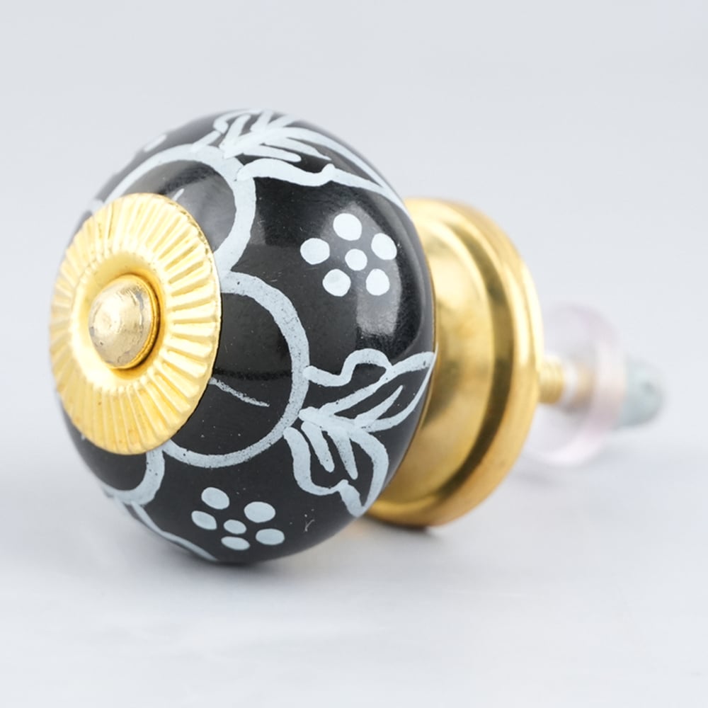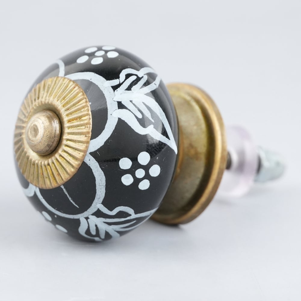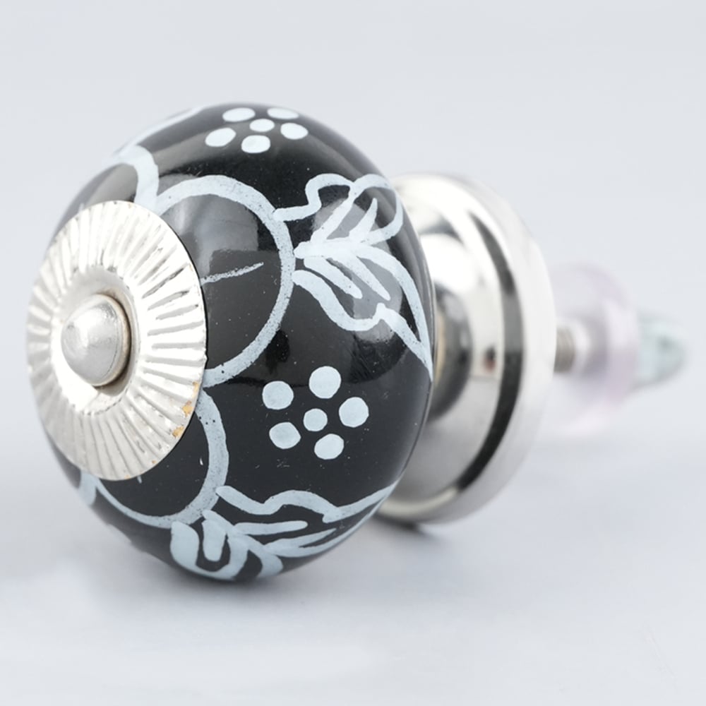 Black Ceramic Floral Drawer Knobs