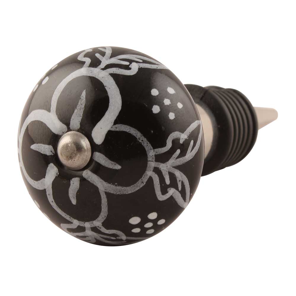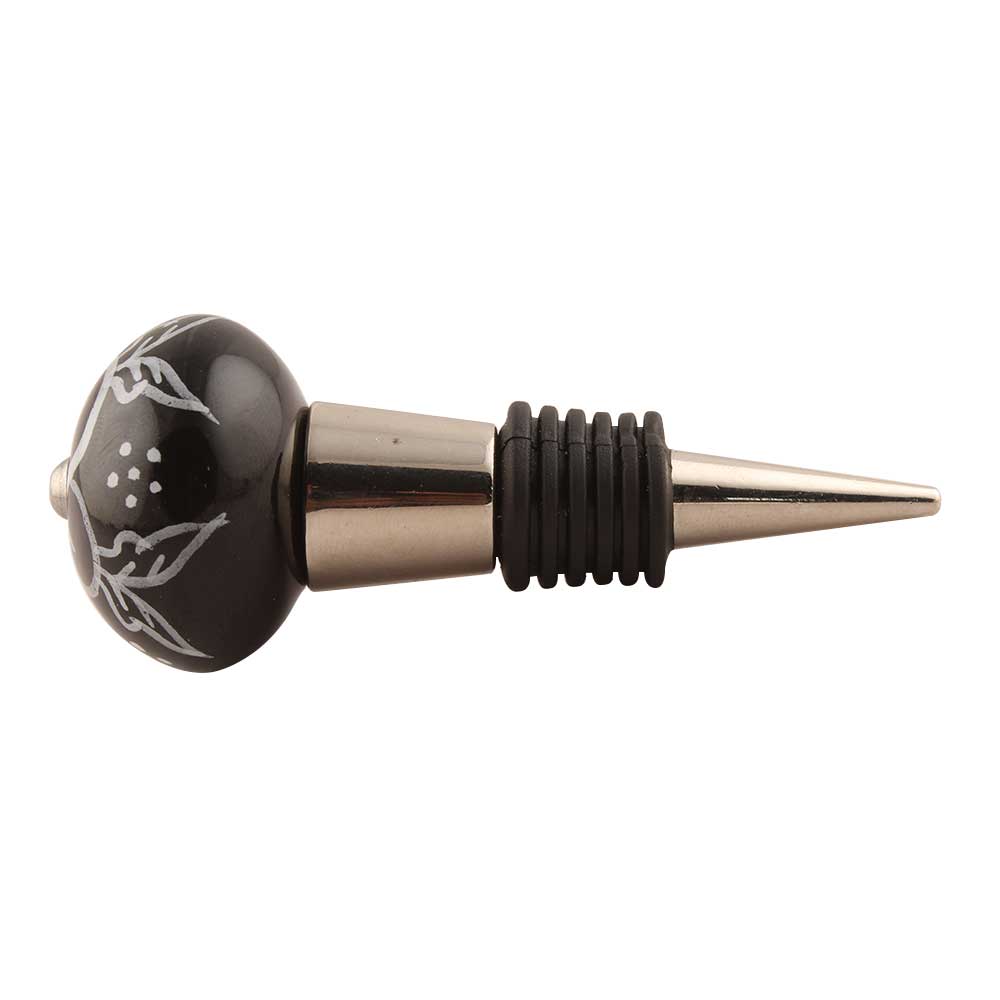 Black Ceramic Floral Wine Stopper