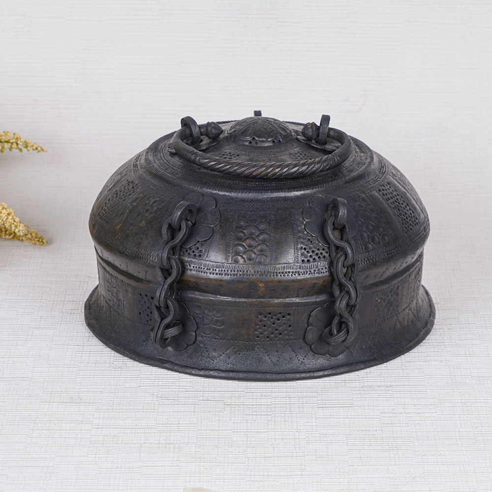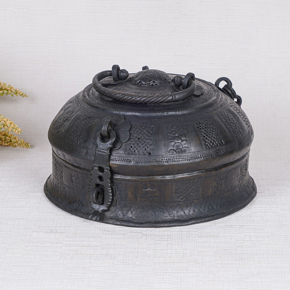 Buy a brass Jewelry box online that is handmade by highly skilled and experienced Indian artisans. This small jewelry box exudes timeless elegance with its stunning black finish, bestowing upon it a captivating vintage allure. Designed with utmost care, it features a convenient handle atop, allowing for easy transport, while a secure latch ensures your treasures remain safely tucked away. Originally conceived as a cherished storage solution for jewelry, this splendid piece continues to serve its purpose in modern times, accommodating precious items of all kinds. Its versatility extends beyond practicality, making it a remarkable decorative addition to your home, office, restaurant, or hotel. The brass jewelry box effortlessly becomes the center of attention when displayed at exhibitions or museums, captivating all who lay eyes upon it. Delight your loved ones on special or festive occasions with this luxury jewelry box, a gift that exudes sophistication and thoughtfulness. Let the harmonious blend of traditional craftsmanship and timeless design elevate your cherished possessions and adorn your surroundings with an enchanting touch.