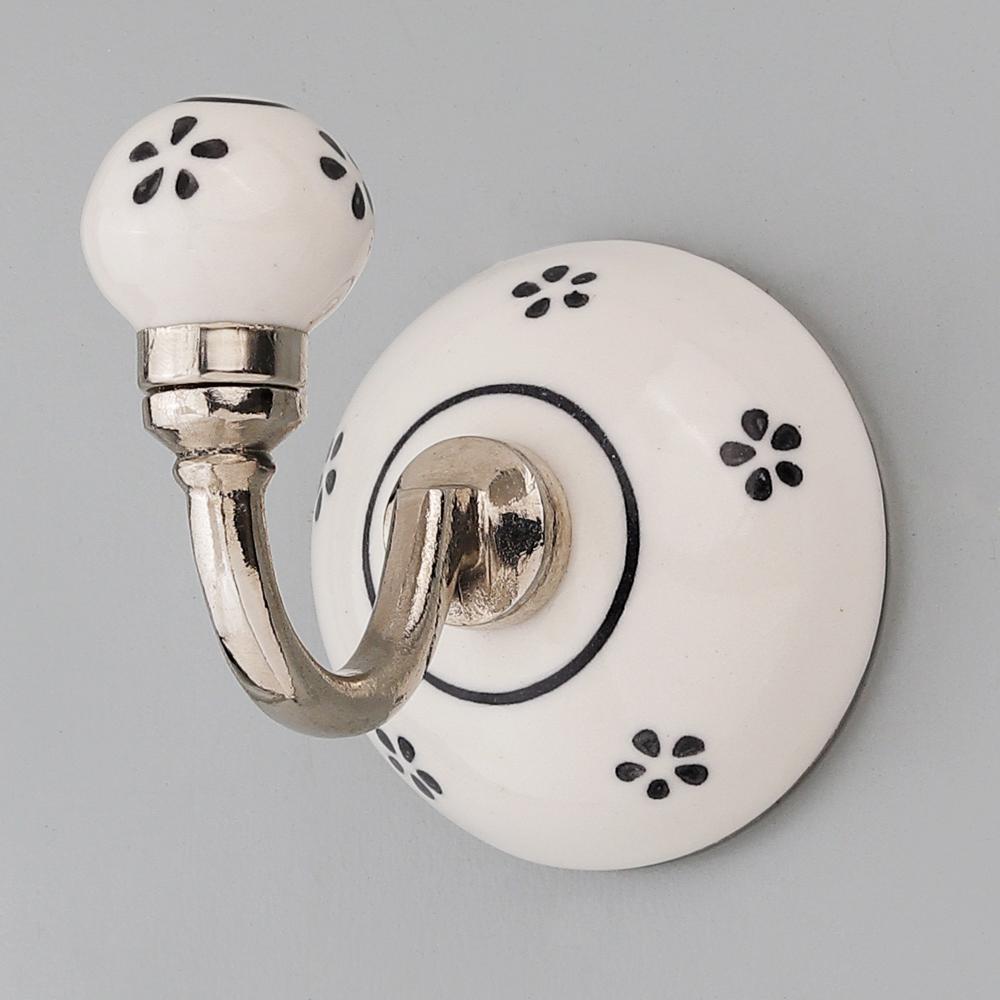 Black Floral Ceramic Hooks. When Put on Wall or Cabinet It is An Art in Itself. This Hook is Strong Enough to Hold Your Cloths, Keys, Tea Cups, Coffee Mugs, Hand Towels Etc.