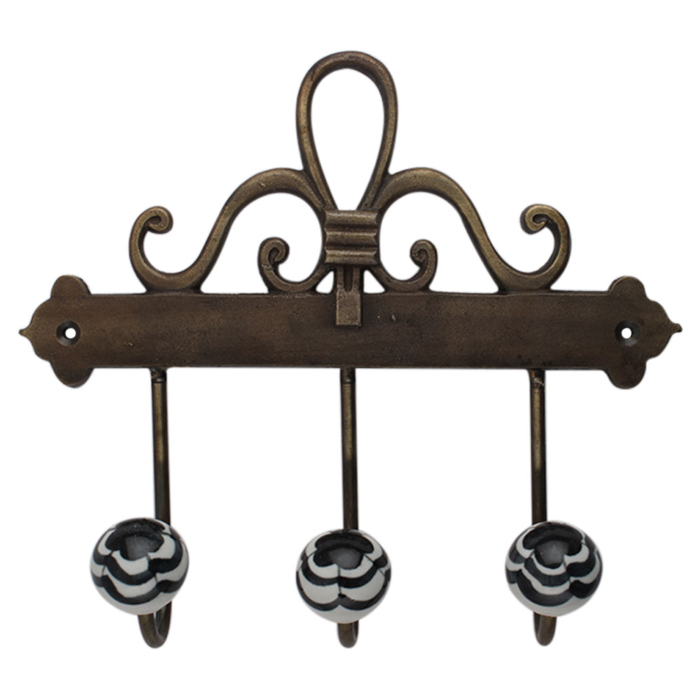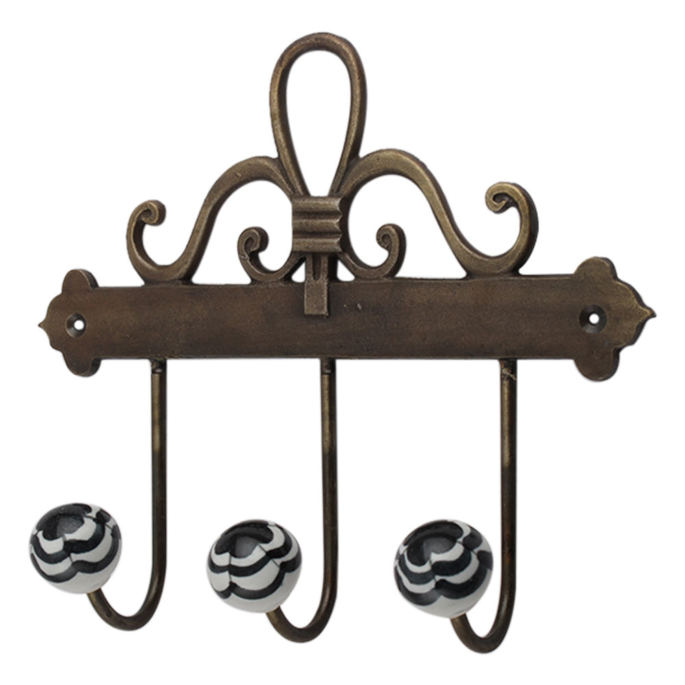 Black Floral Ceramic Iron Hook. A Perfect Complement to the Soft Tone of the Wood are these White Traditional Hat Coat Hook Made of Genuine Porcelain and Brass. It can be use to Hang Jewellery, Leashes, Towels, Scarves, Light Weight Sweaters, Caps Etc.