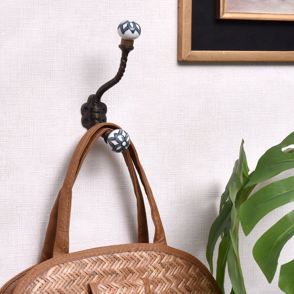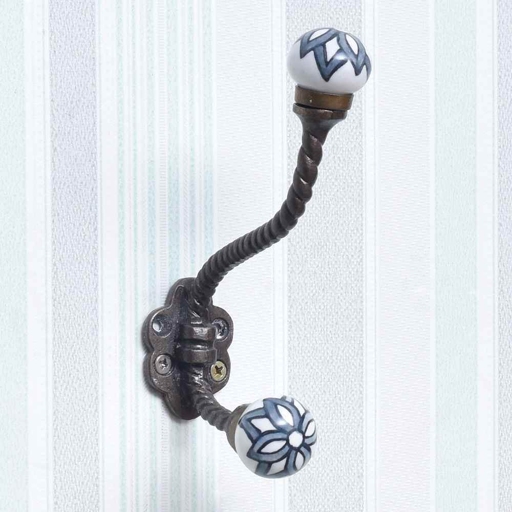 Black Floral Ceramic Iron Wall Hooks