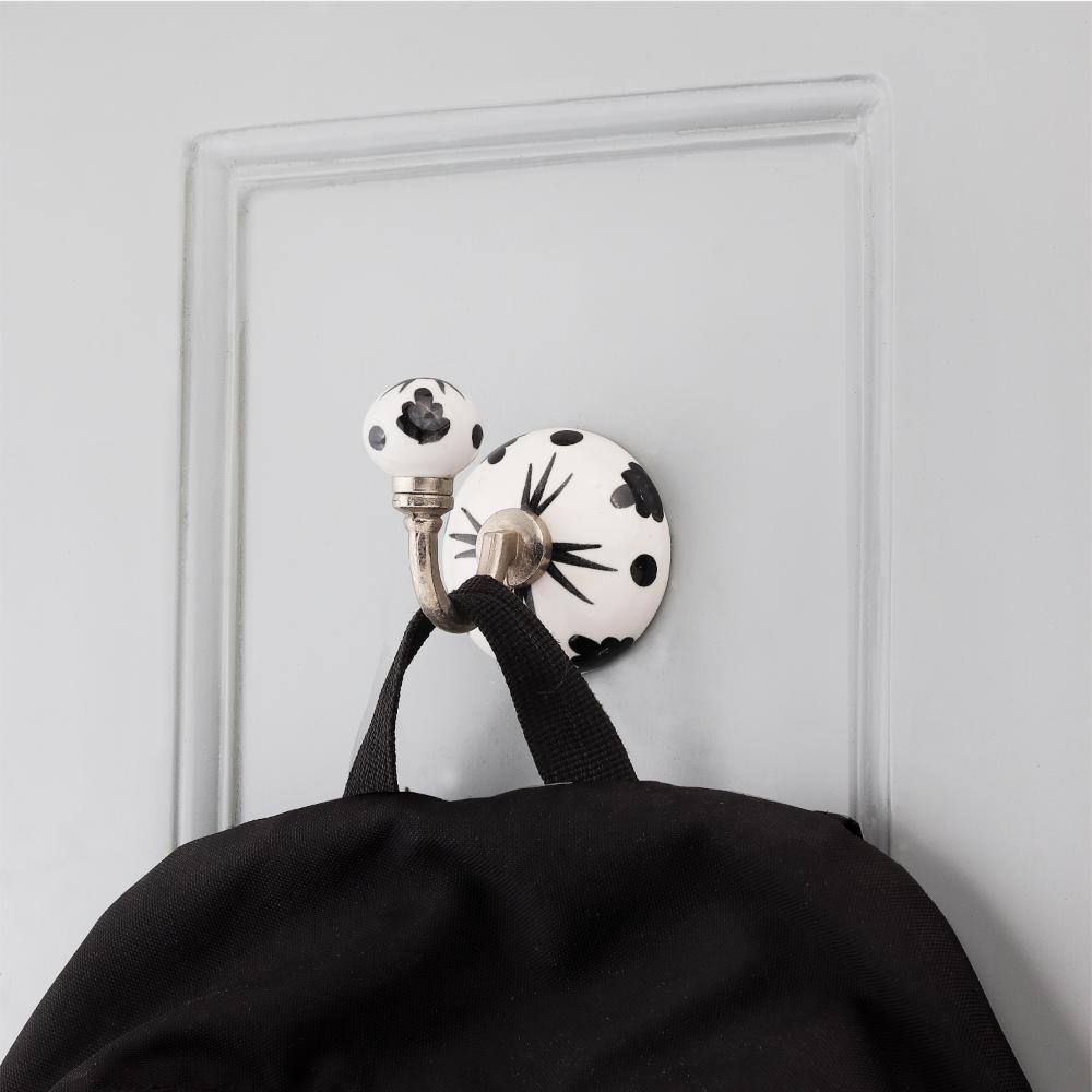 Black Floral Dot Hooks. When Put on Wall or Cabinet It is An Art in Itself. This Hook is Strong Enough to Hold Your Cloths, Keys, Tea Cups, Coffee Mugs, Hand Towels Etc.