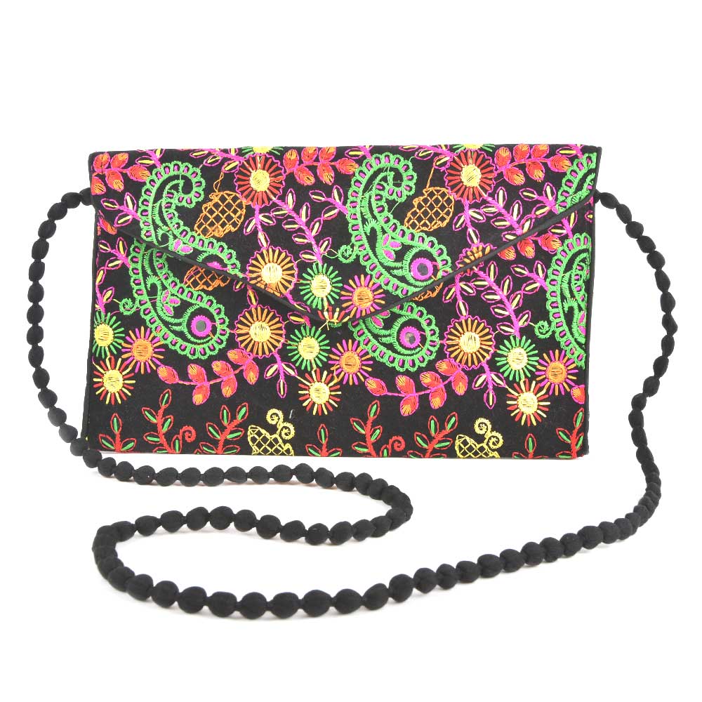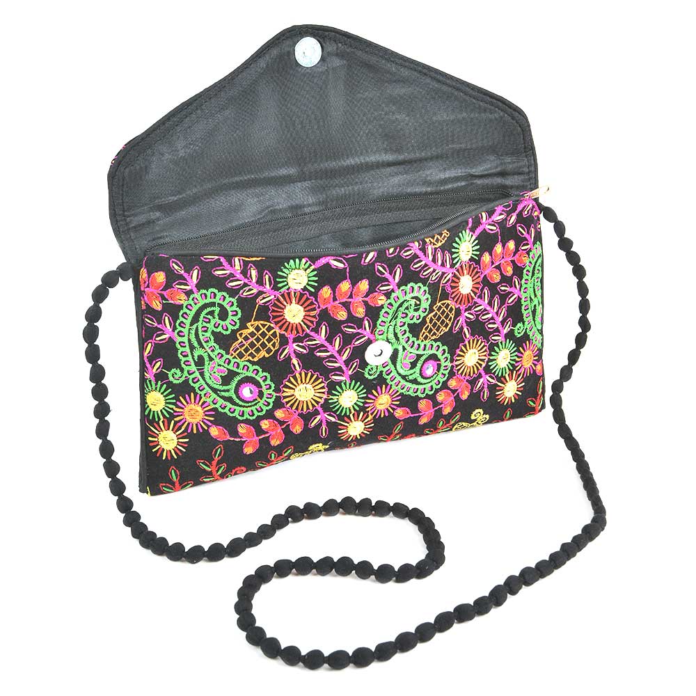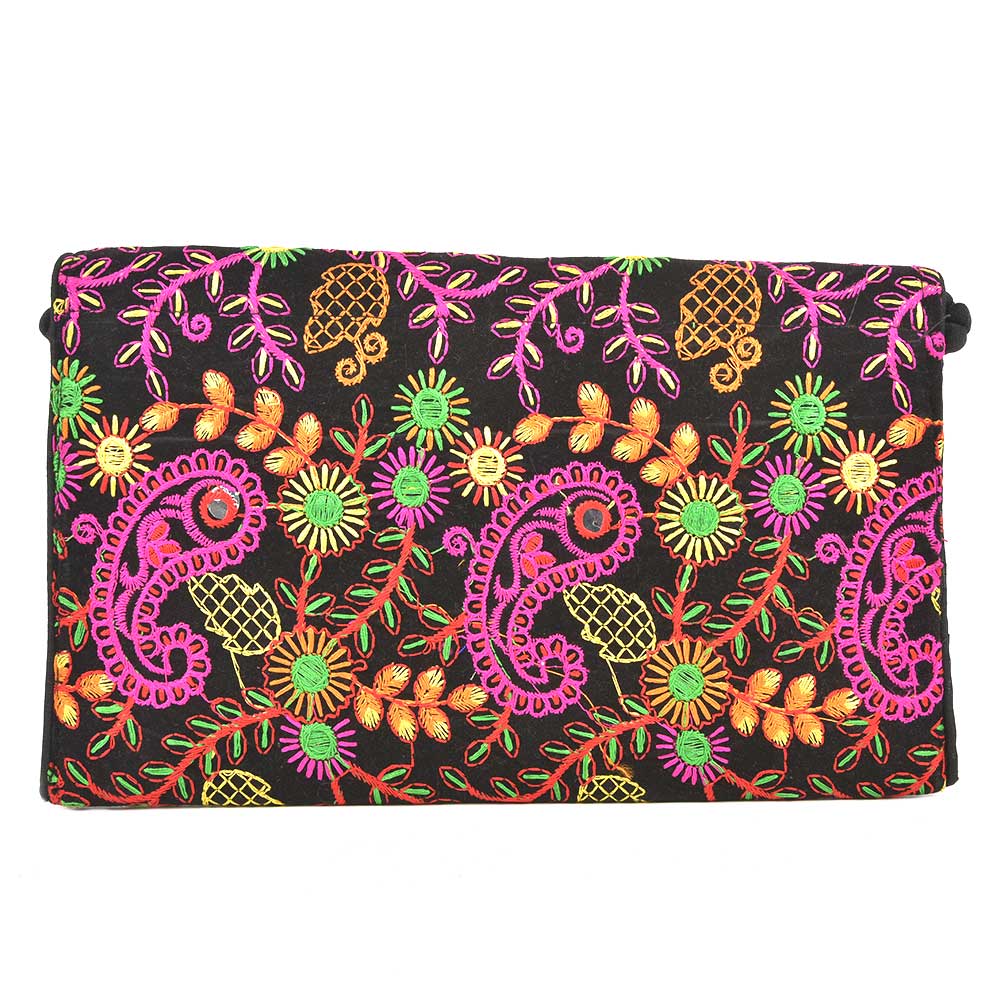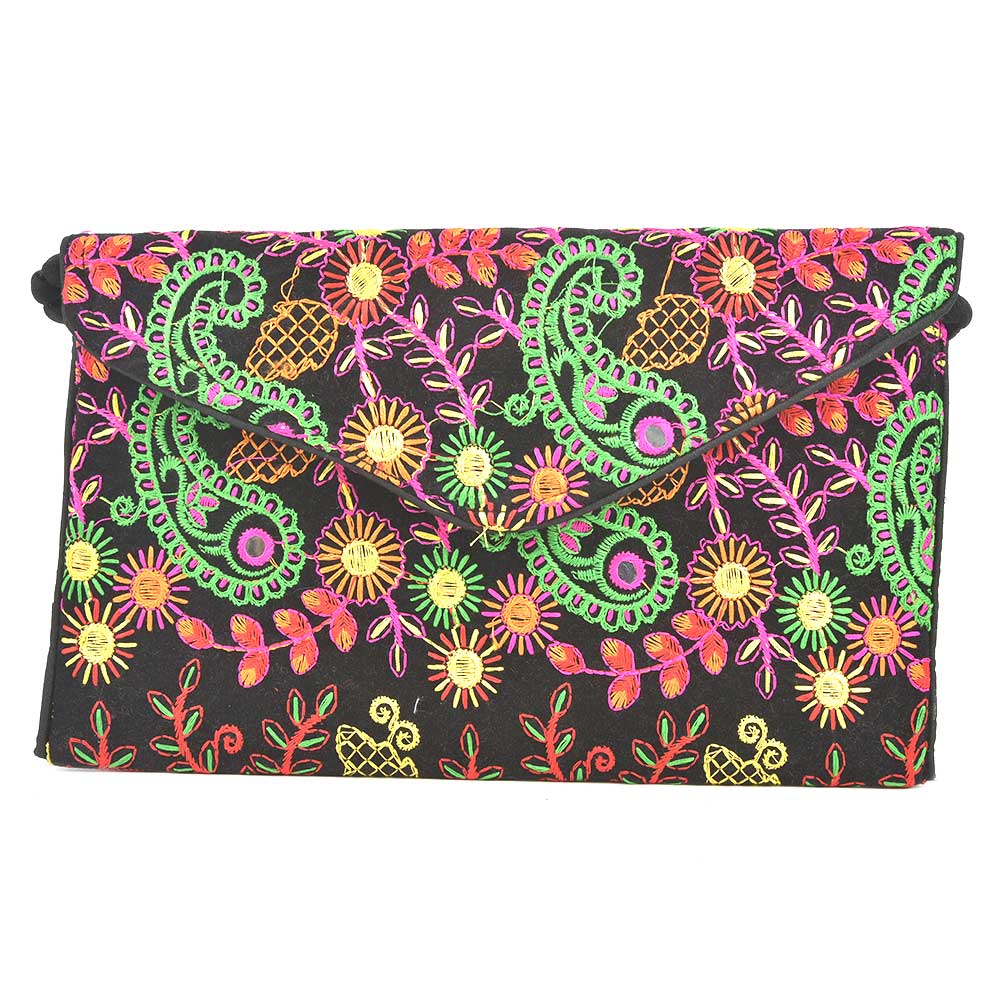 Black Floral Tribal Ethnic Gypsy Clutch Shoulder Bag