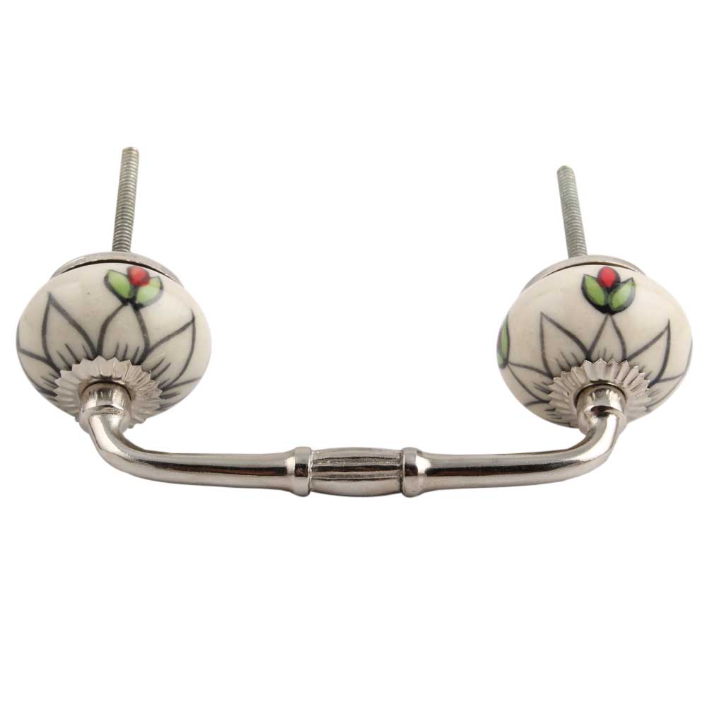 Indianshelf.com for bulk/wholesale orders.Indianshelf.us for personal purchases.The Black Flower Ceramic Bridge Handle is a stylish and practical addition to your home decor. This beautifully designed handle features a distinctive flower motif, highlighting intricate details on the ceramic surface. The striking black color enhances the look of any furniture, from kitchen cabinets to dressers, providing a chic, modern aesthetic with timeless charm.