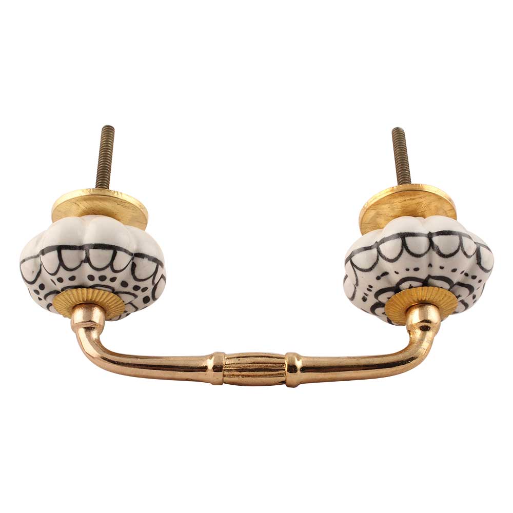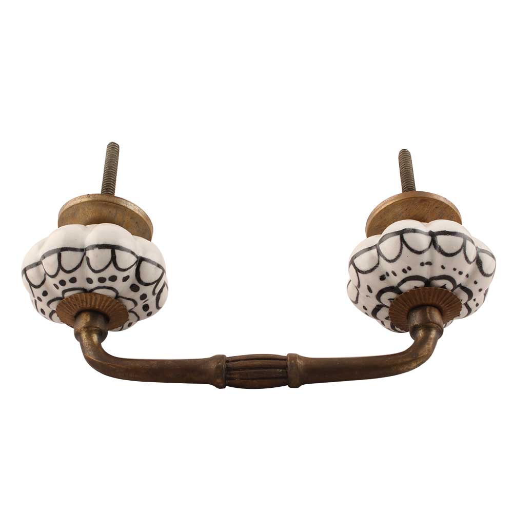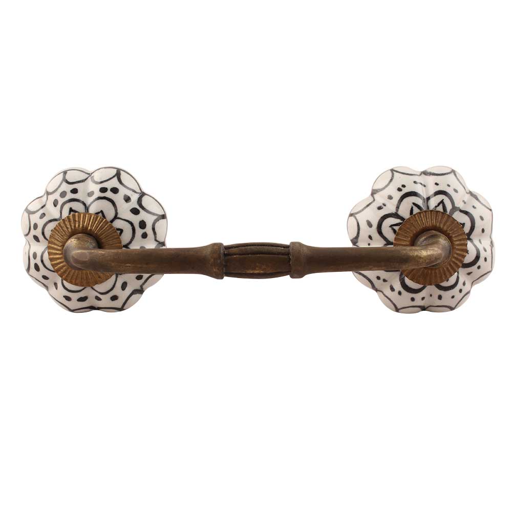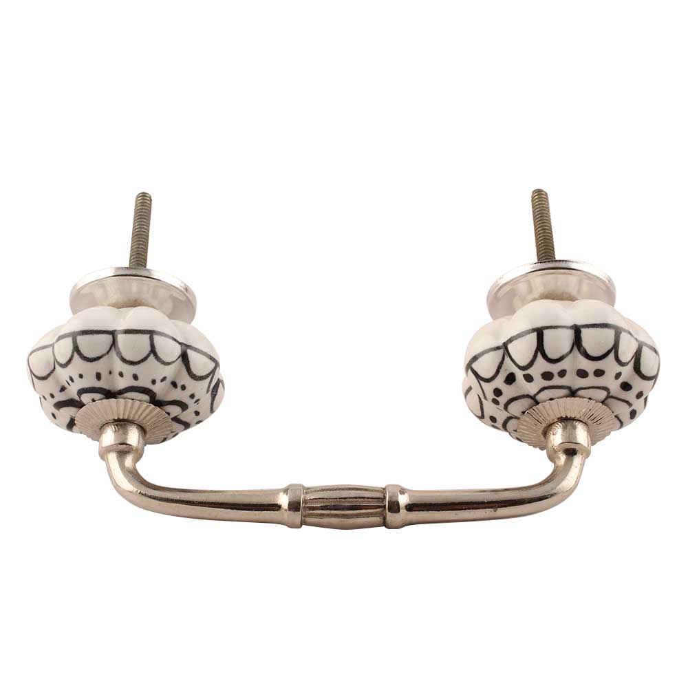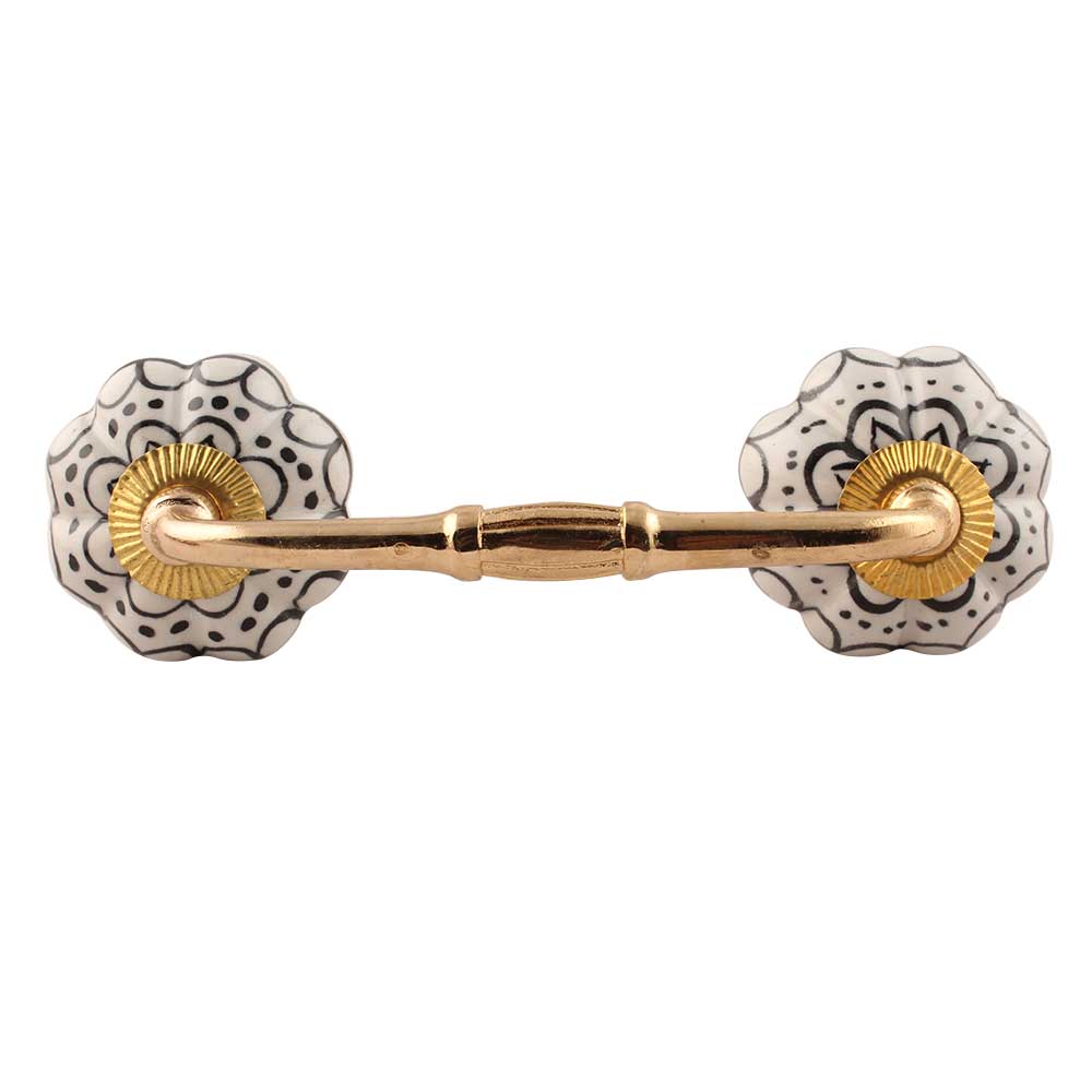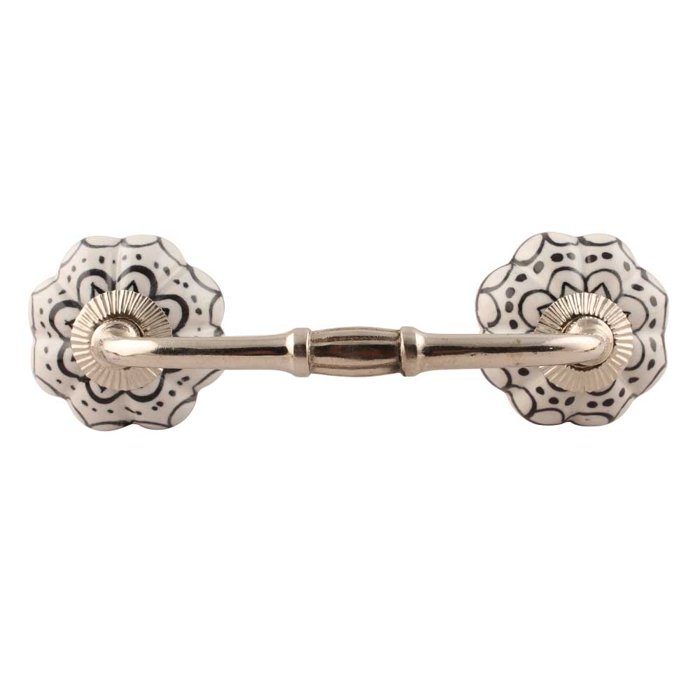 Black Flower Ceramic Bridge Handle. Ideal for Drawer, Dresser, Cabinet, Wardrobe, Cupboard and Almirah etc.
