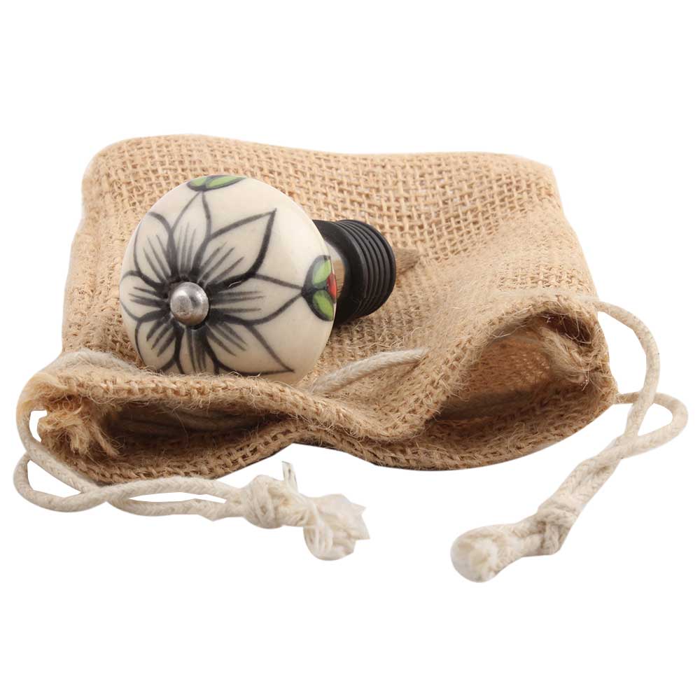 Black Flower Ceramic Wine Stopper.zinc alloy wine bottle stopper with attractive Jute Bag Packaging.