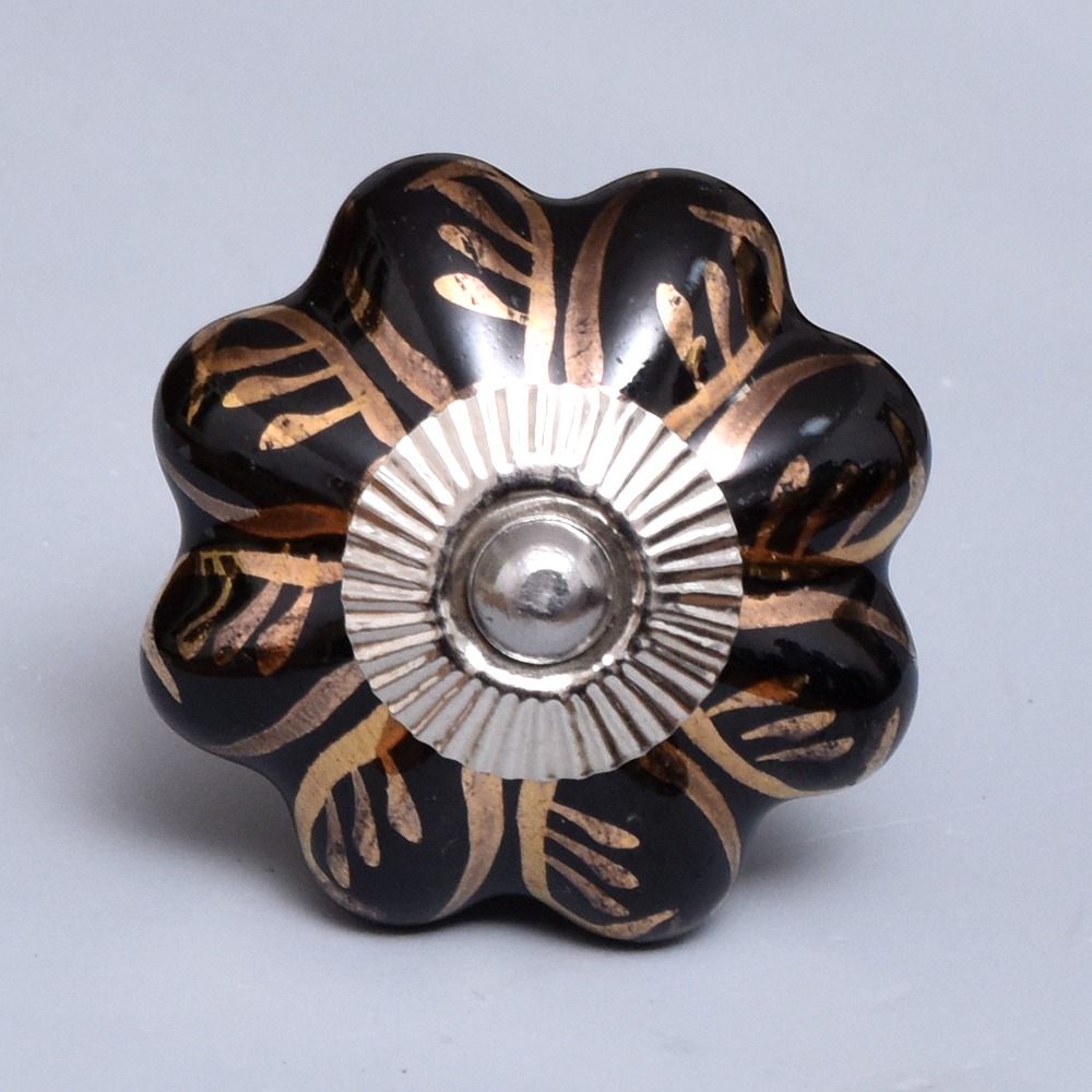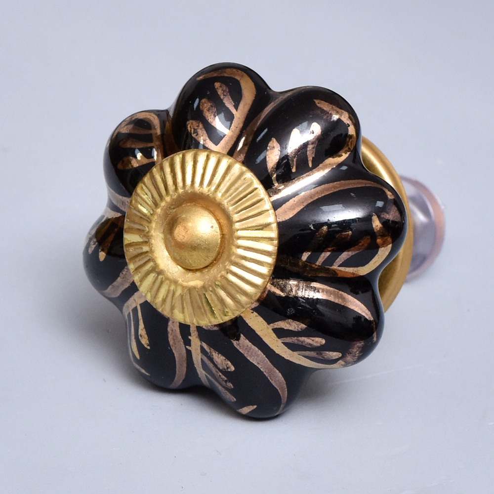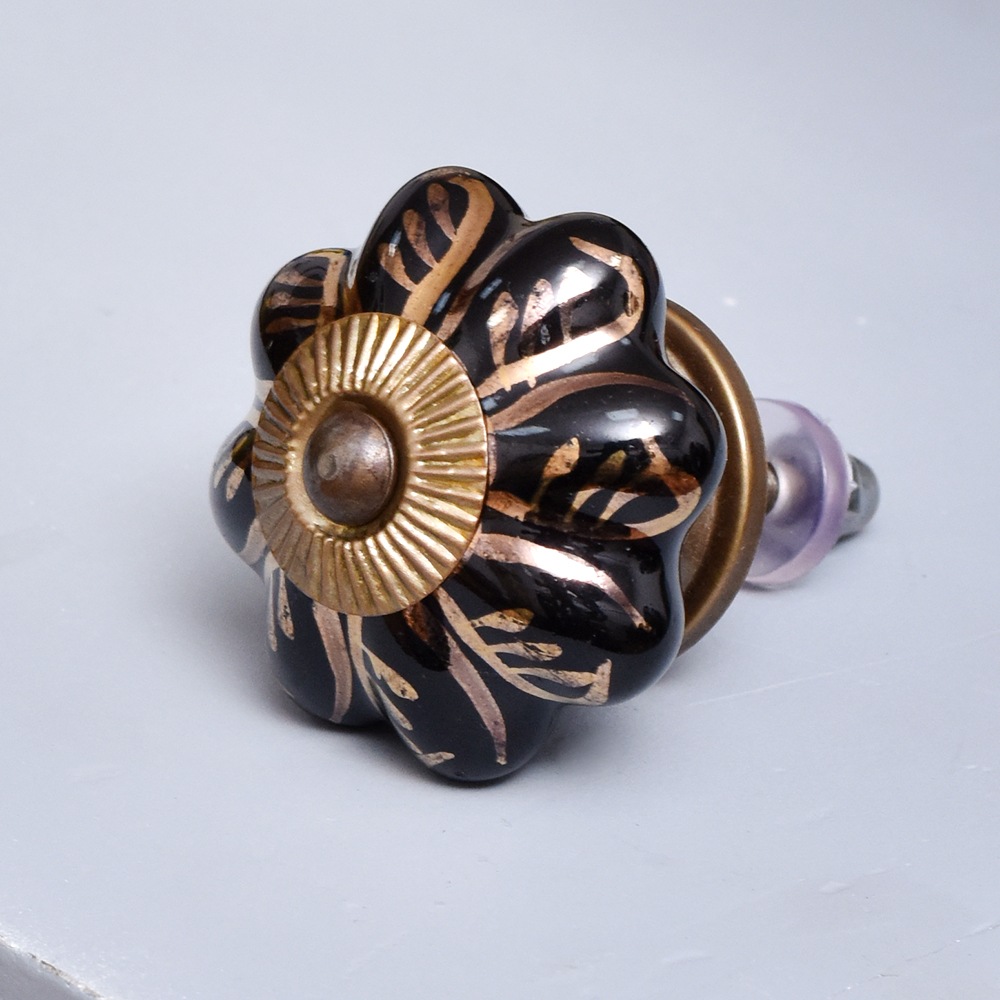 Black Golden Leaf Big Melon Cabinet Knob
