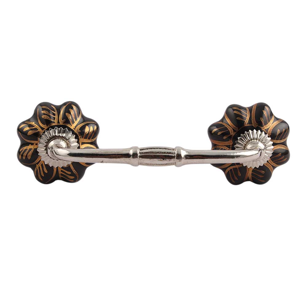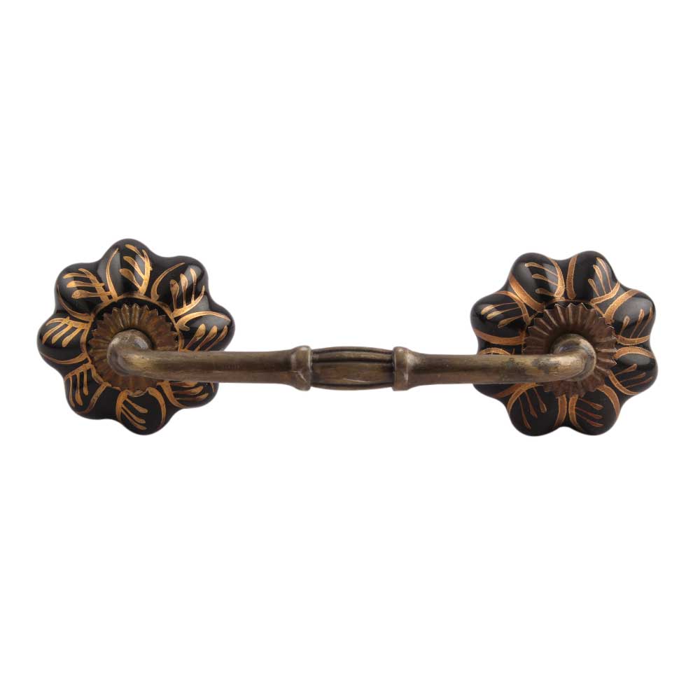 Black Golden Leaf Big Melon Ceramic Bridge Handle. Ideal for Drawer, Dresser, Cabinet, Wardrobe, Cupboard and Almirah.