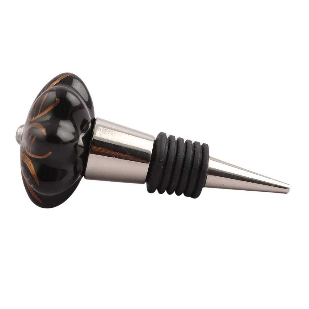 Black Golden Leaf Big Melon Ceramic Wine Stopper