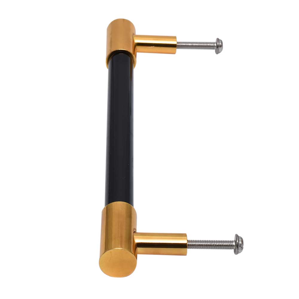 Constructed from high-quality glass with gold-toned metal fittings, these medium-sized cylinder-shaped handles offer both aesthetic appeal and long-lasting durability. Their transparent black design with golden accents seamlessly complements various interior styles, making them perfect for drawers, dressers, cabinets, wardrobes, cupboards, and almirahs.