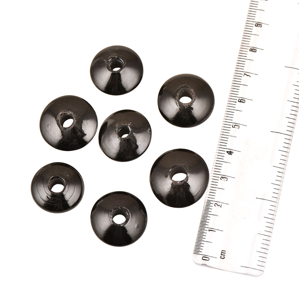 Black Hand Painted Donut Disc Shaped Glass Jewelry Making Loose Beads (12 in Pack)