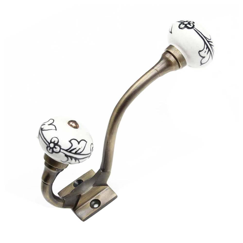 The black floral ceramic detail adds depth and a botanical touch, while the antique iron complements both modern and vintage styles.
