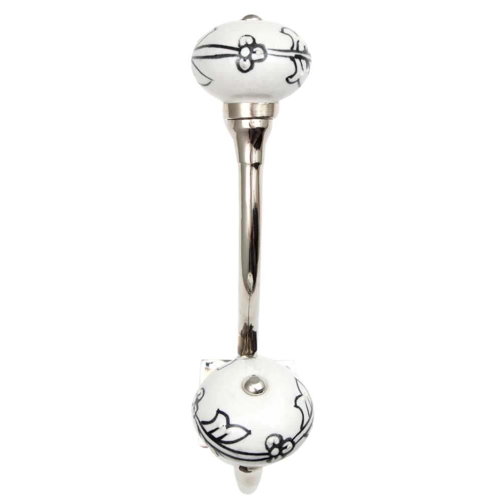 Finish: Glossy black floral ceramic, matte brushed silver iron
