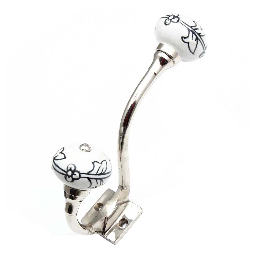 Bring nature-inspired elegance to your walls with the Black Leaf Ceramic Floral Silver Iron Hook. Handcrafted with a delicate floral leaf motif in black-glazed ceramic, this wall hook adds a refined, organic touch to any room. The ceramic floral knob sits atop a sleek silver iron base, offering a balance of artistry and strength. Each hook is individually crafted, making it a standout piece that turns functional wall storage into decor.