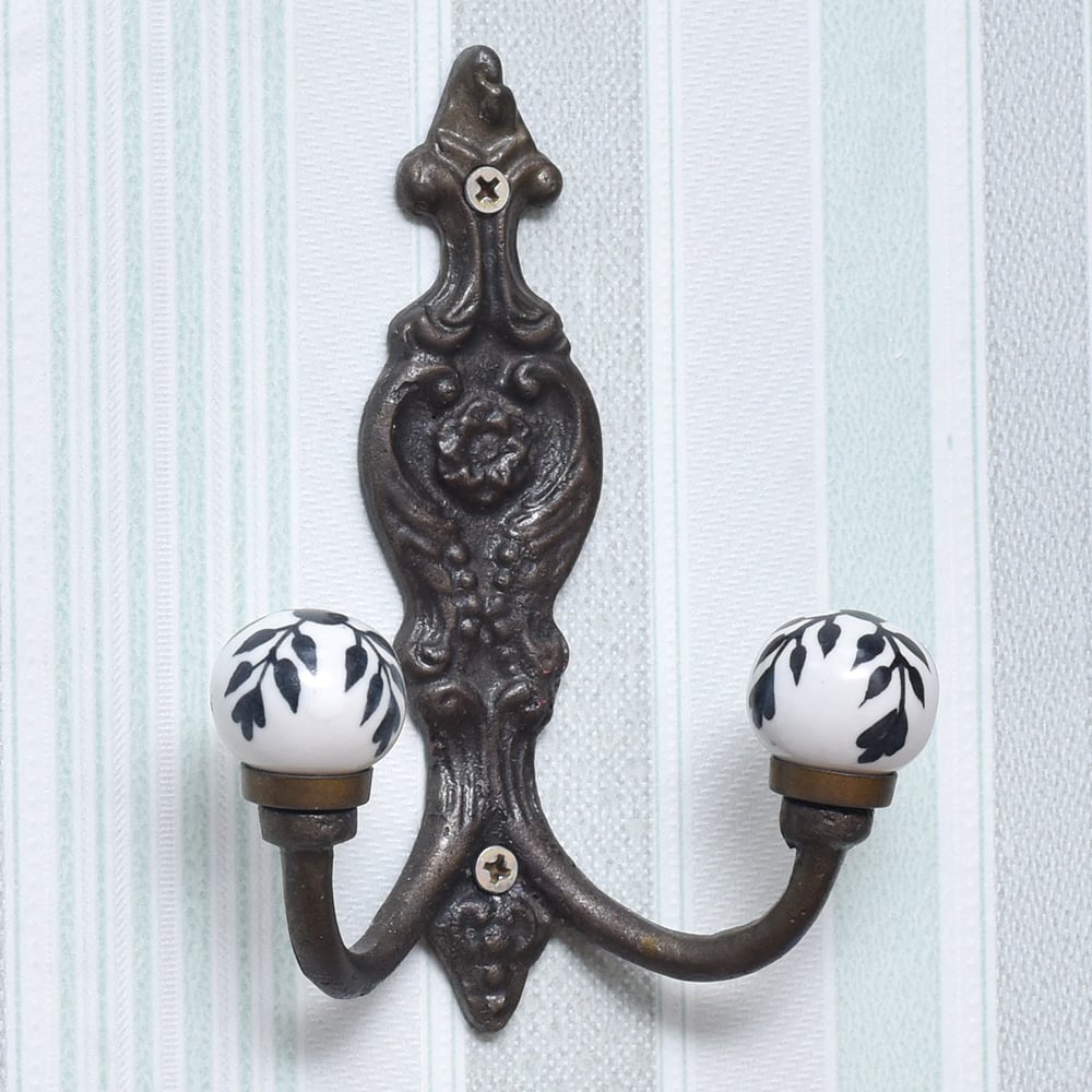 Enhance your home decor with this exquisite iron and ceramic wall hook, featuring a unique black leaf engraving on ceramic and a dark finish on iron. Handcrafted by professional Indian artisans, this wall hook is a testament to their skill and craftsmanship. Perfect for organizing your space, this wall hook is designed to hold a variety of items, making it a practical addition to any room. Use it as a backpack hook for wall, jacket wall hanger, or coat wall mount, and keep your belongings tidy and within easy reach. Not only is this wall hook functional, but it also makes a thoughtful gift for your family, friends, or relatives. Its unique design and high-quality craftsmanship make it a perfect gift for special occasions such as housewarmings, birthdays, or any other celebration. Add a touch of elegance to your loved one’s homes with this exquisite wall hook, and elevate their space with its timeless appeal.