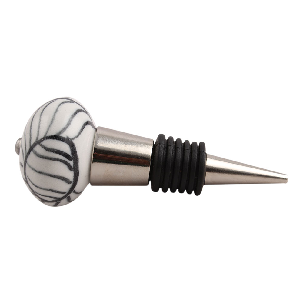 Black Leaf Ceramic Wine Stopper.zinc alloy wine bottle stopper with attractive Jute Bag Packaging.