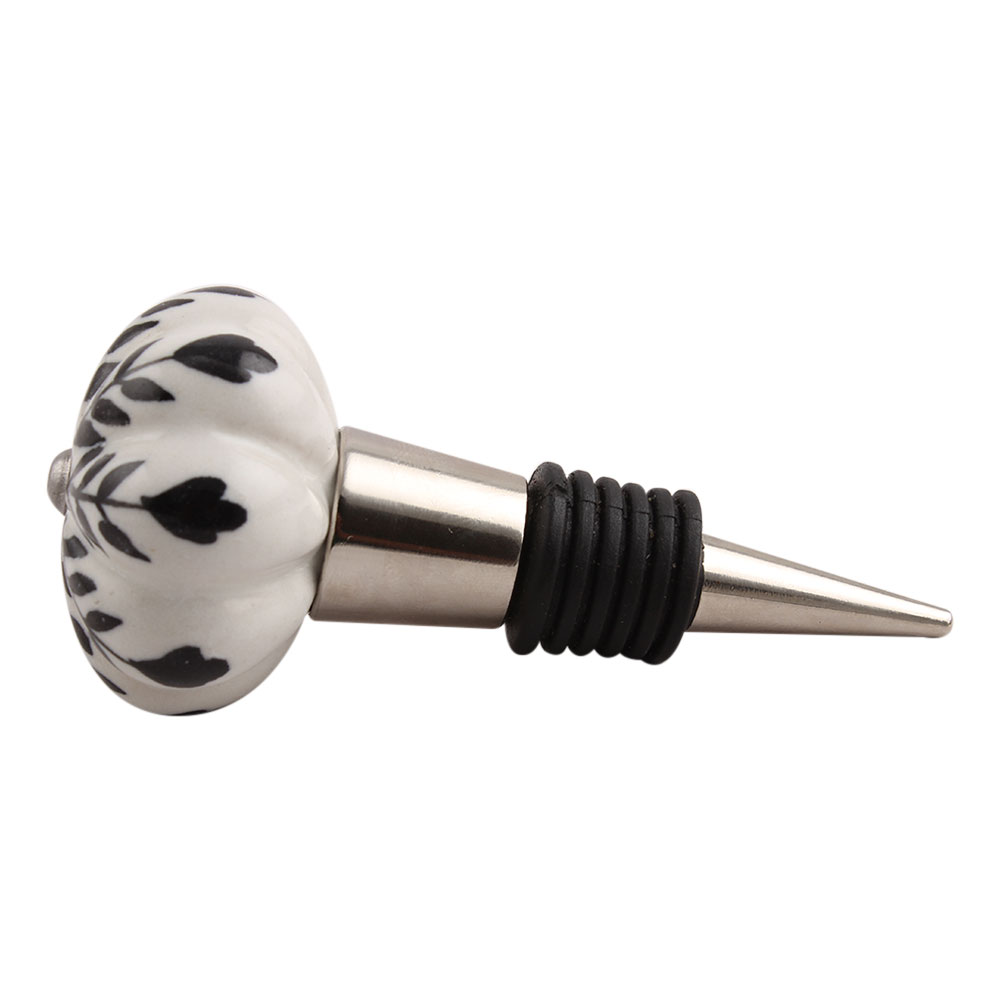 Black Leaf Ceramic Wine Stopper.zinc alloy wine bottle stopper with attractive Jute Bag Packaging.