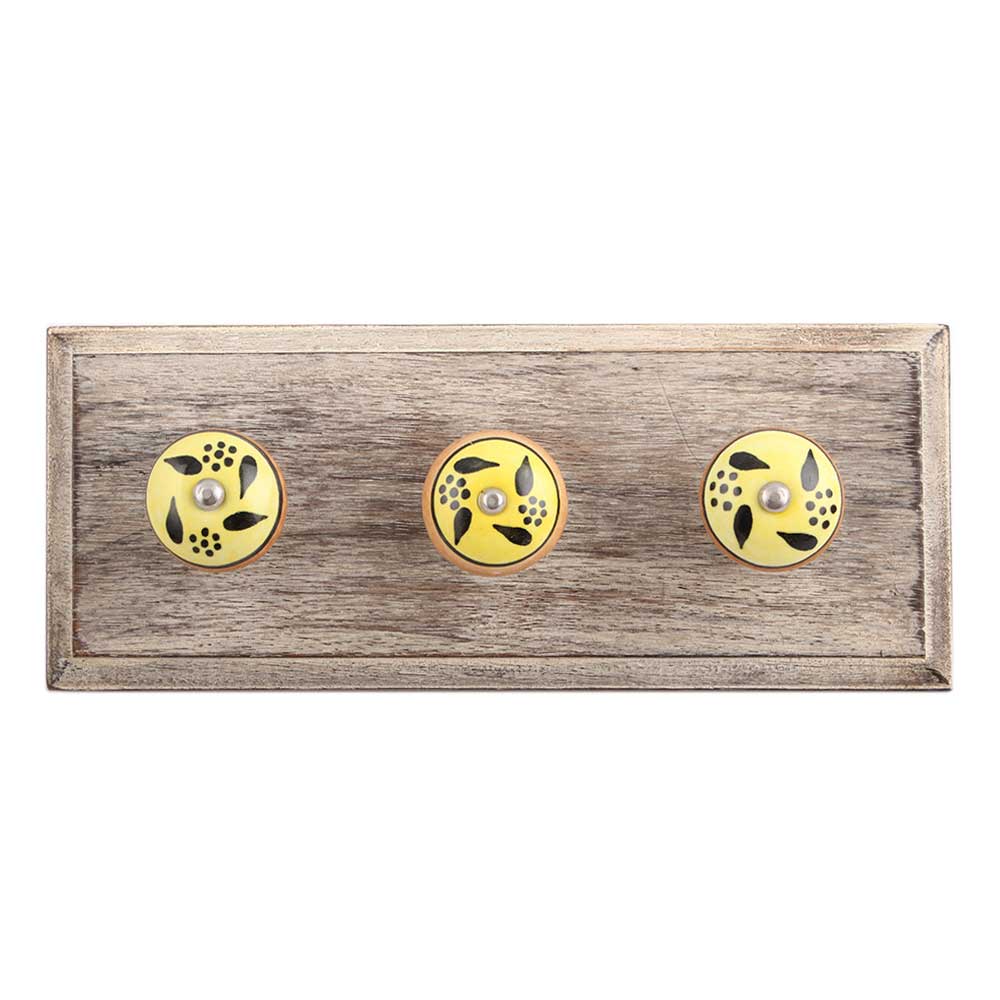 Black Leaf Ceramic Wooden Hook. A Perfect Complement to the Soft Tone of the Wood are these White Traditional Hat & Coat Hook Made of Genuine Porcelain and Brass. It can be use to Hang Jewellery, Leashes, Towels, Scarves, Light Weight Sweaters, Caps Etc.