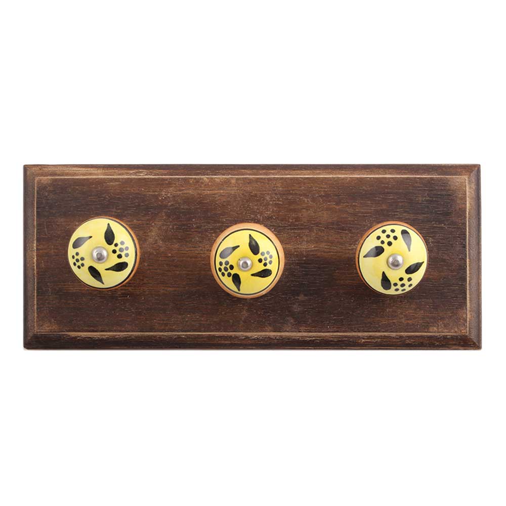 Black Leaf Ceramic Wooden Hook. A Perfect Complement to the Soft Tone of the Wood are these White Traditional Hat & Coat Hook Made of Genuine Porcelain and Brass. It can be use to Hang Jewellery, Leashes, Towels, Scarves, Light Weight Sweaters, Caps Etc.