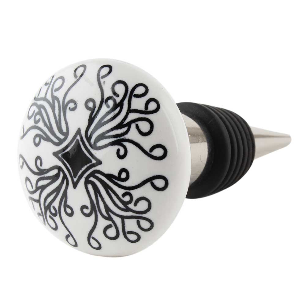 Black Leaf Flat Ceramic Wine Bottle Stopper