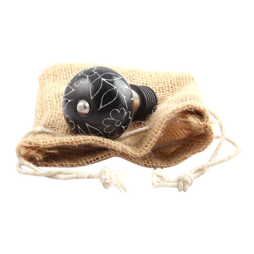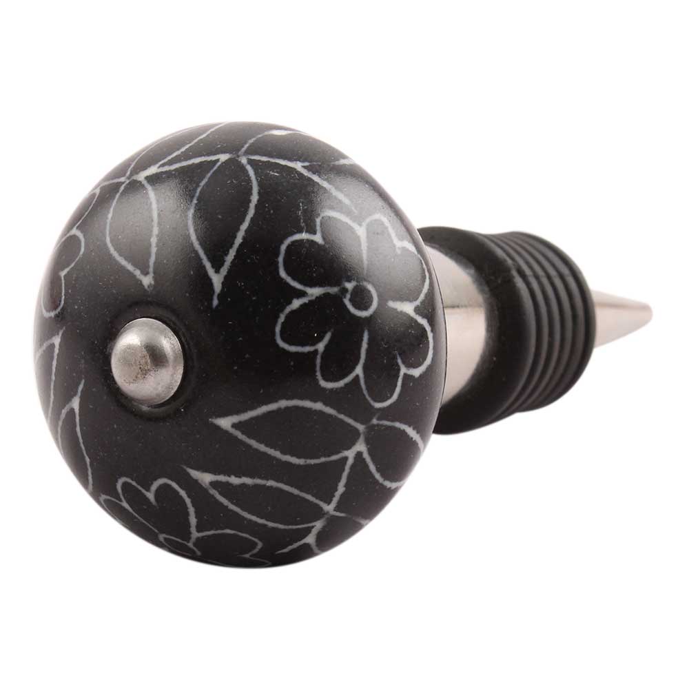 Black Leaf Floral Ceramic Wine Stopper