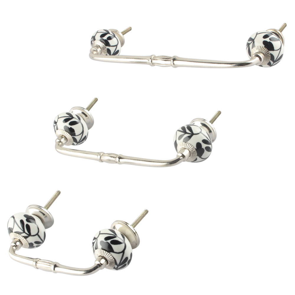 Black Leaf Flower Ceramic Bridge Handle. Ideal for Drawer, Dresser, Cabinet, Wardrobe, Cupboard and Almirah.