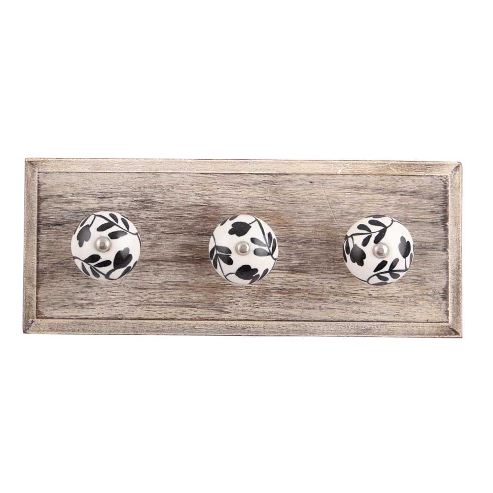 Black Leaf Flower Ceramic Wooden Hook. A Perfect Complement to the Soft Tone of the Wood are these White Traditional Hat Coat Hook Made of Genuine Porcelain and Brass. It can be use to Hang Jewellery, Leashes, Towels, Scarves, Light Weight Sweaters, Caps Etc.