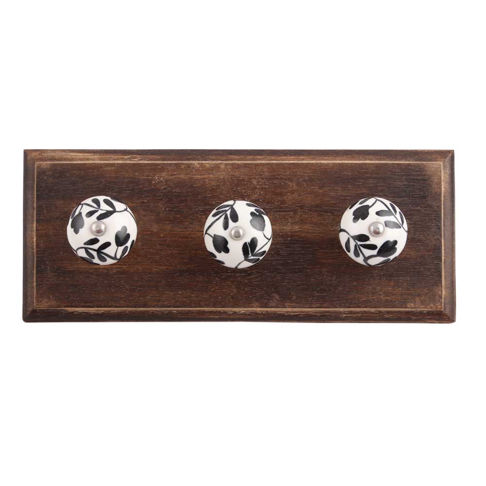 Black Leaf Flower Ceramic Wooden Hook. A Perfect Complement to the Soft Tone of the Wood are these White Traditional Hat Coat Hook Made of Genuine Porcelain and Brass. It can be use to Hang Jewellery, Leashes, Towels, Scarves, Light Weight Sweaters, Caps Etc.