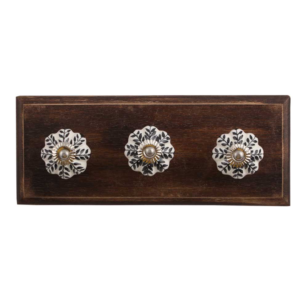 Black Leaf Melon Ceramic Wooden Hook. A Perfect Complement to the Soft Tone of the Wood are these White Traditional Hat & Coat Hook Made of Genuine Porcelain and Brass. It can be use to Hang Jewellery, Leashes, Towels, Scarves, Light Weight Sweaters, Caps Etc.
