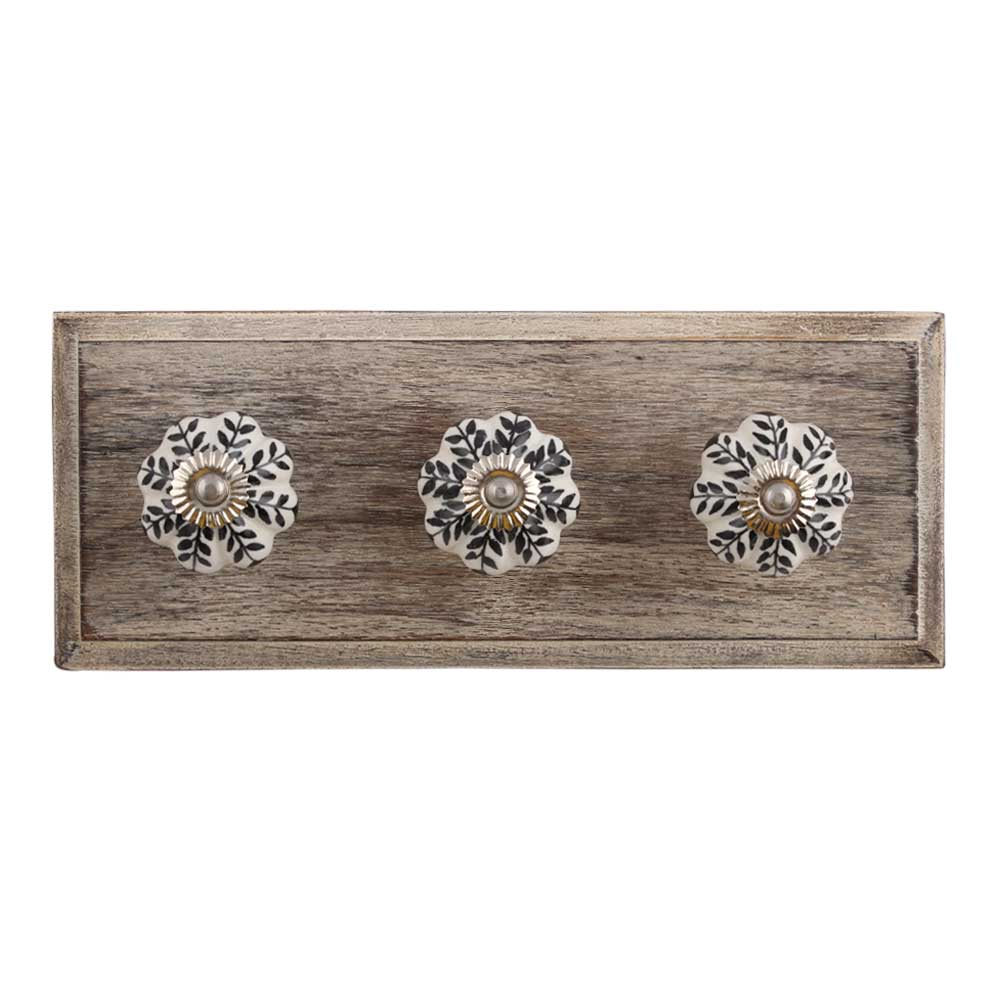 Black Leaf Melon Ceramic Wooden Hook. A Perfect Complement to the Soft Tone of the Wood are these White Traditional Hat & Coat Hook Made of Genuine Porcelain and Brass. It can be use to Hang Jewellery, Leashes, Towels, Scarves, Light Weight Sweaters, Caps Etc.