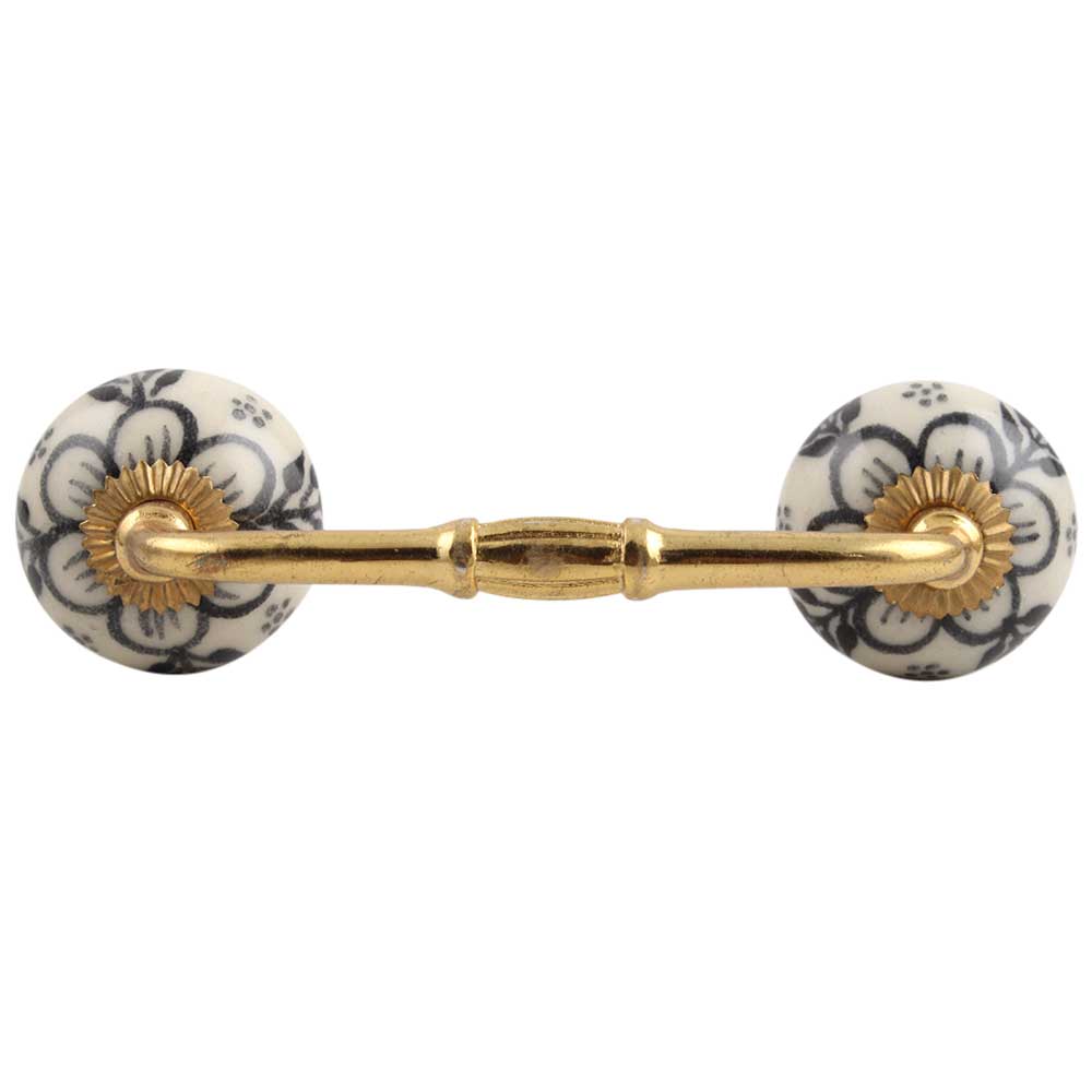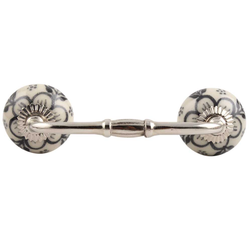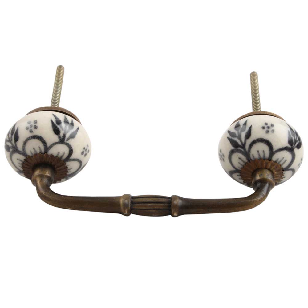 Black Leaf Round Ceramic Bridge Handle. Ideal for Drawer, Dresser, Cabinet, Wardrobe, Cupboard and Almirah.
